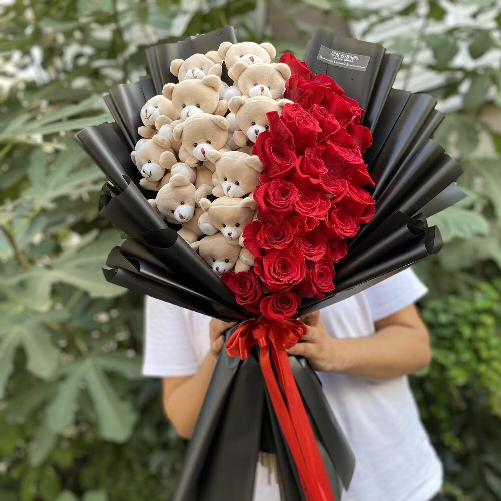 kırmızı gül - 25 adet peluş ayıcık - 12 adet