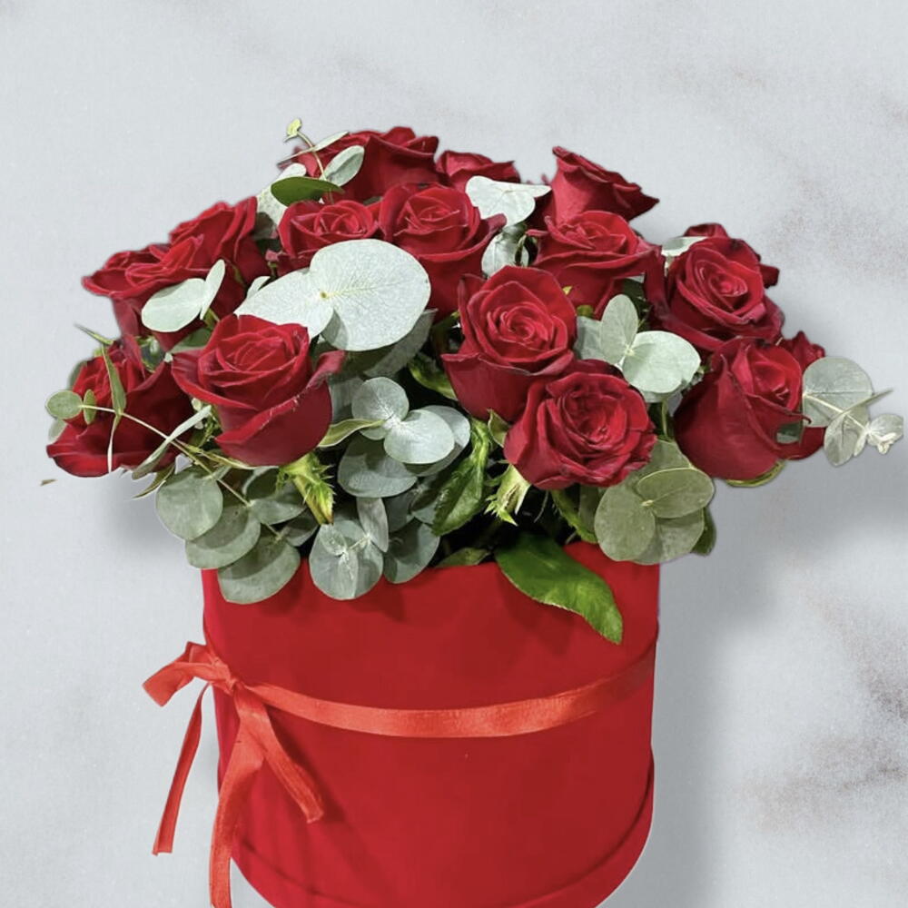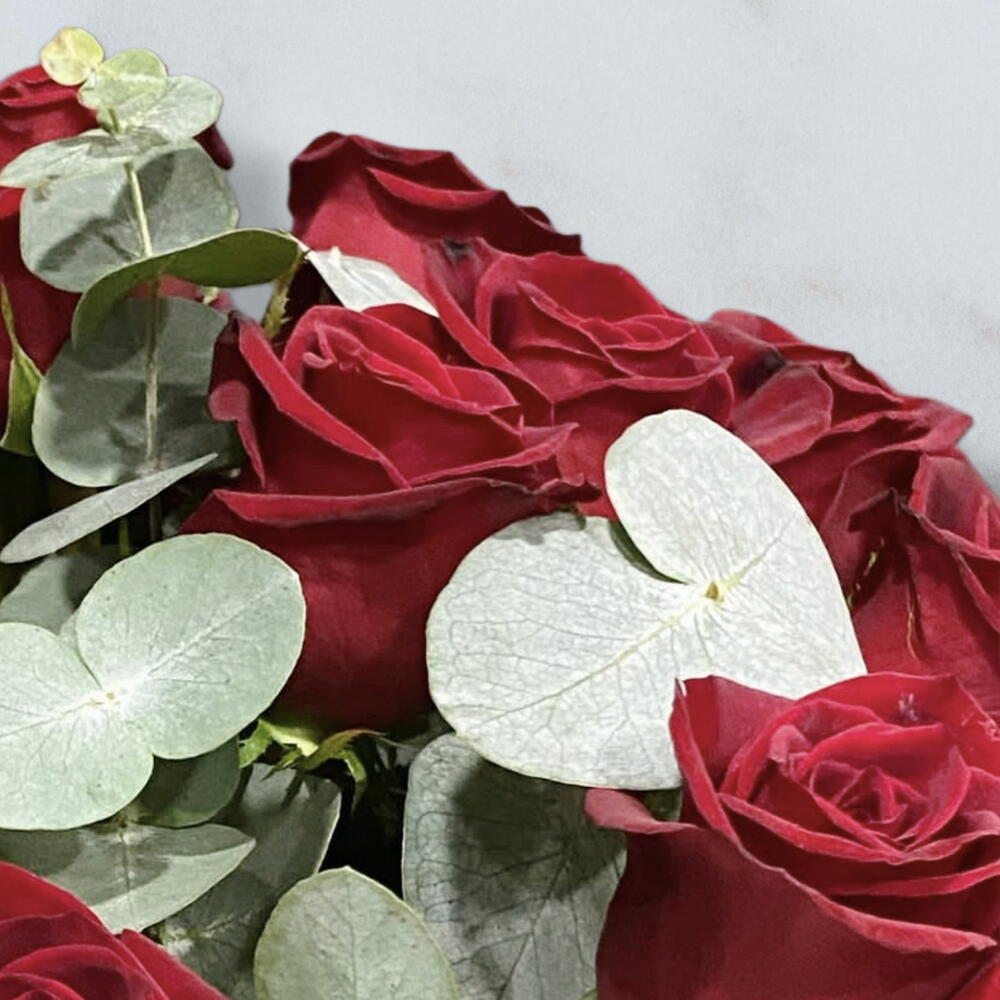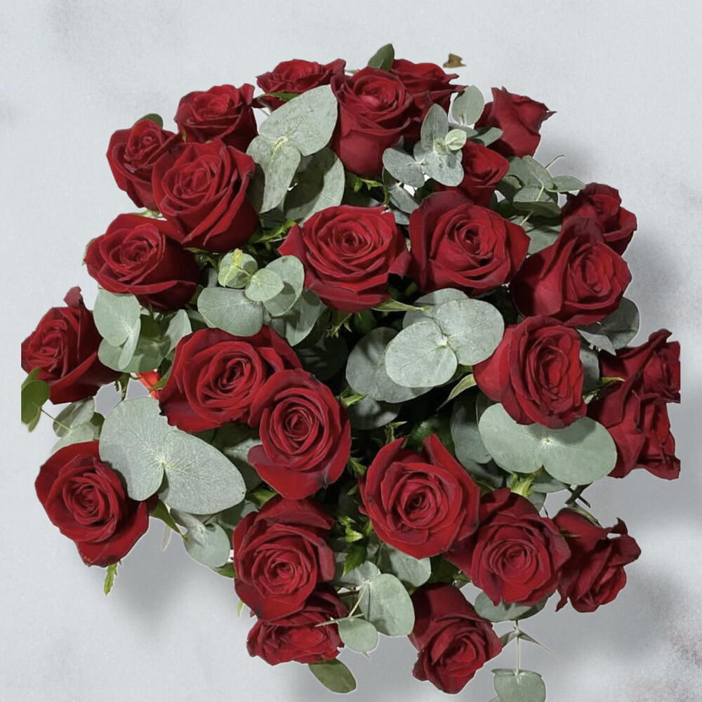 okaliptüs - 15 adet kırmızı gül - 27 adet