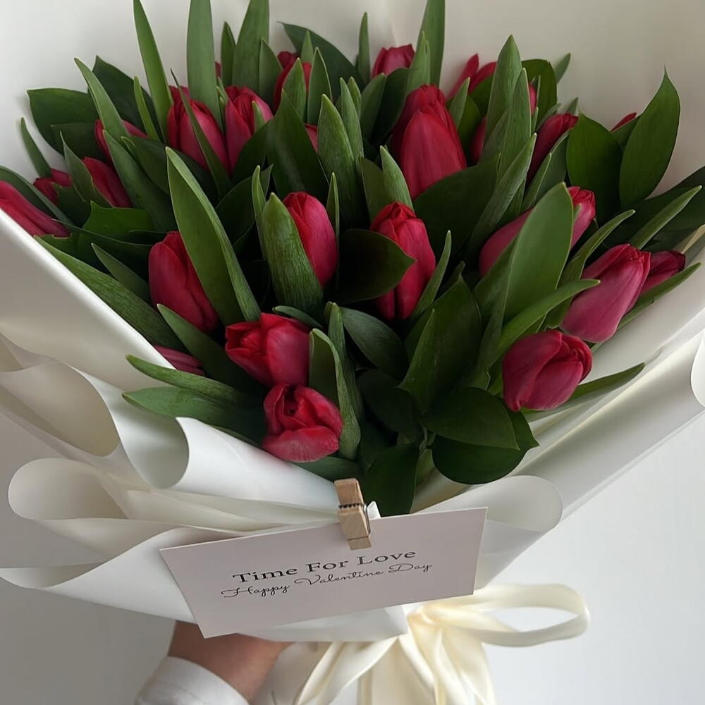 Aşkı sade ve zarif bir dille anlatmanın en güzel yolu: Kırmızı lale buketi. Canlı ve parlak kırmızı tonlarıyla dikkat çeken 25 adet ithal lale, özel beyaz saten ambalajla özenle sarılarak sunulmuştur. Sevgililer Günü, yıldönümü ya da anlamlı bir sürpriz için unutulmaz bir hediye. Üzerindeki “Time For Love” kartı ile mesajınızı sevgi dolu bir şekilde iletebilirsiniz. Bakım Önerisi: Buketi serin ve doğrudan güneş ışığı almayan bir yerde saklayın. Vazo kullanıyorsanız, her gün suyunu değiştirerek lalelerin tazeliğini ve canlılığını daha uzun süre koruyabilirsiniz.