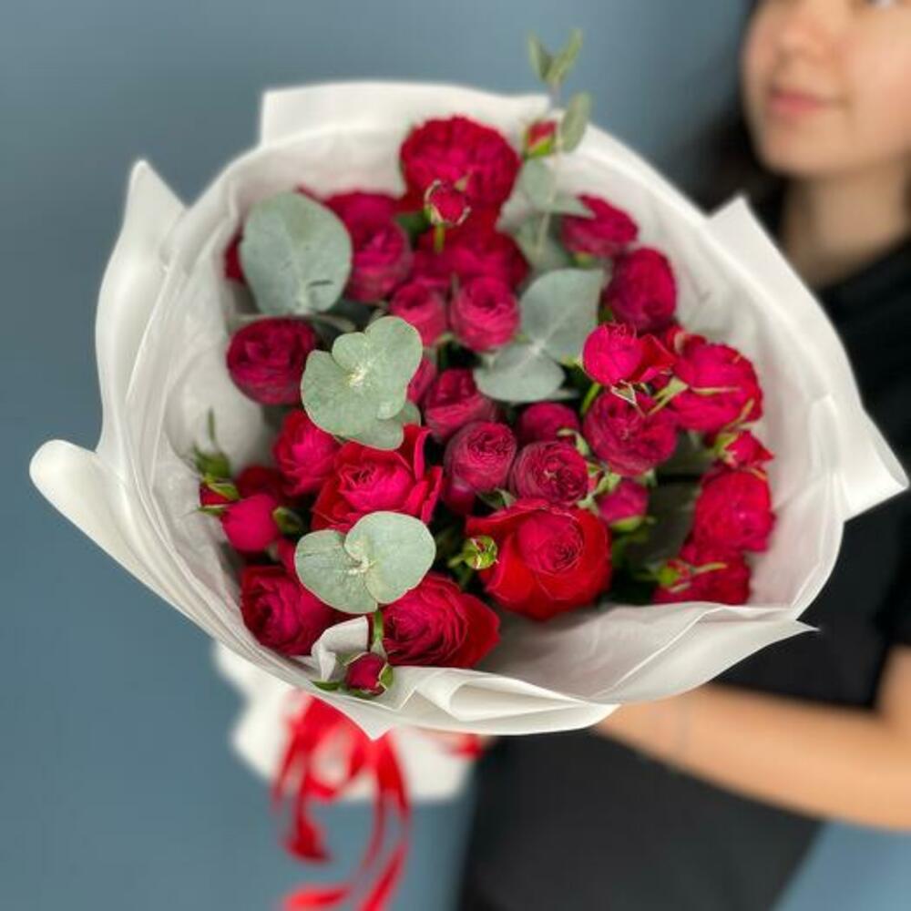 Göz alıcı kırmızı sprey güllerden oluşan buketimizin canlı zarafetini deneyimleyin. Her bir çiçek, zengin kıpkırmızı tonu ve yemyeşil, şakayık benzeri yapraklarıyla tutku ve incelik yayar. Romantik jestler, yıldönümleri veya herhangi bir özel gün için mükemmel olan bu buket, sevgi ve hayranlığın güçlü bir ifadesidir. Lüks, çok yapraklı güller büyüleyici ve unutulmaz bir aranjman yaratarak özel biri için unutulmaz bir hediye olmasını sağlar. Not: Mevsim sartlarina ve stok durumuna göre renk tonlarinda ufak degisiklikler olabilir.