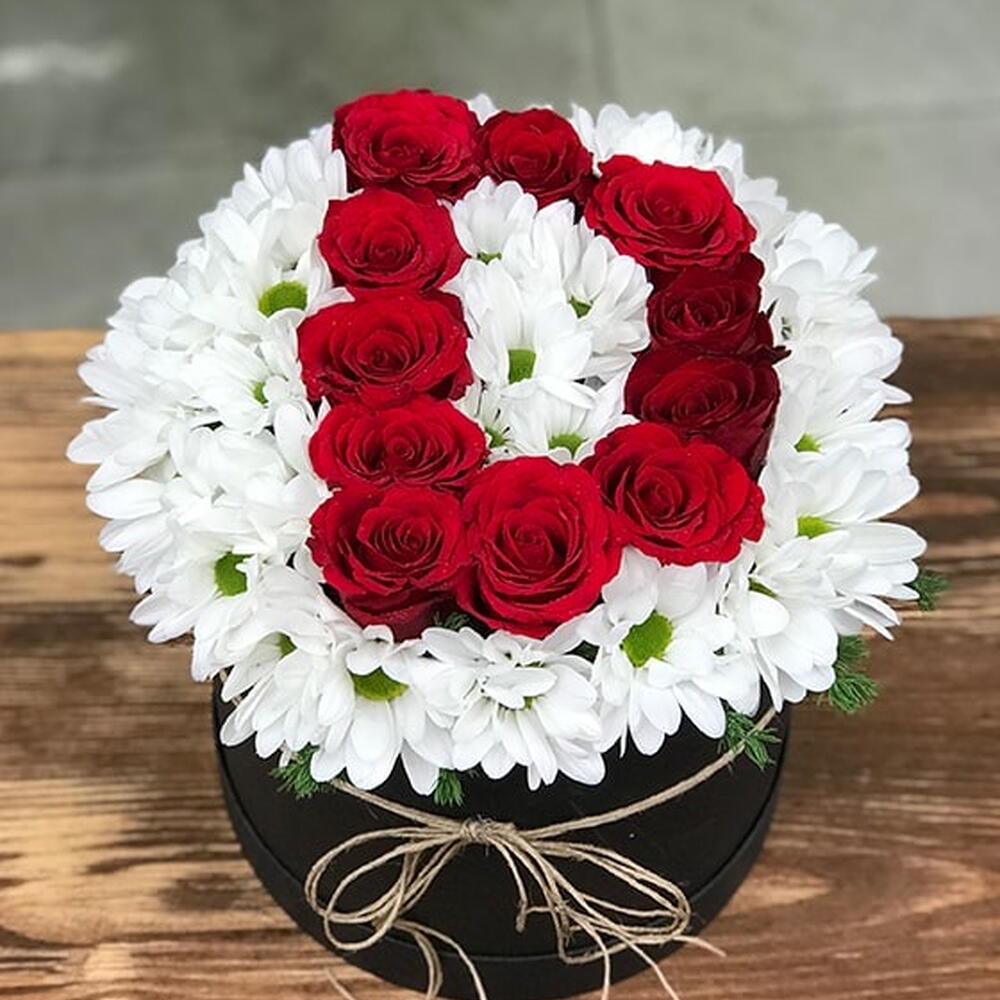kırmızı gül - 12 adet beyaz papatya - 40 adet