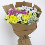 Kraft Kağıda Sarılı Rengarenk Papatya Buketi
