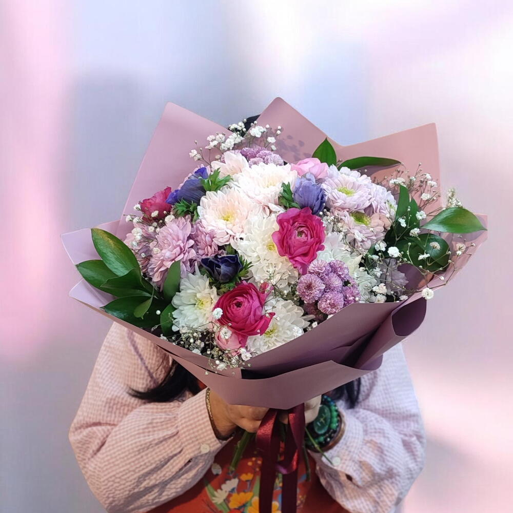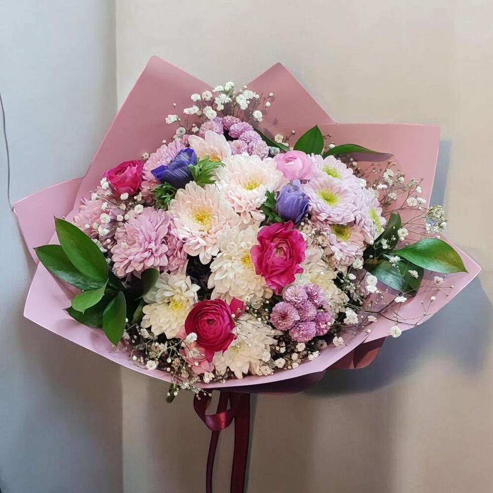 Krizantem ranunculus bouquet pink