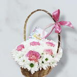 sepet - 1 adet krizantem - 25 adet pembe gül - 5 adet