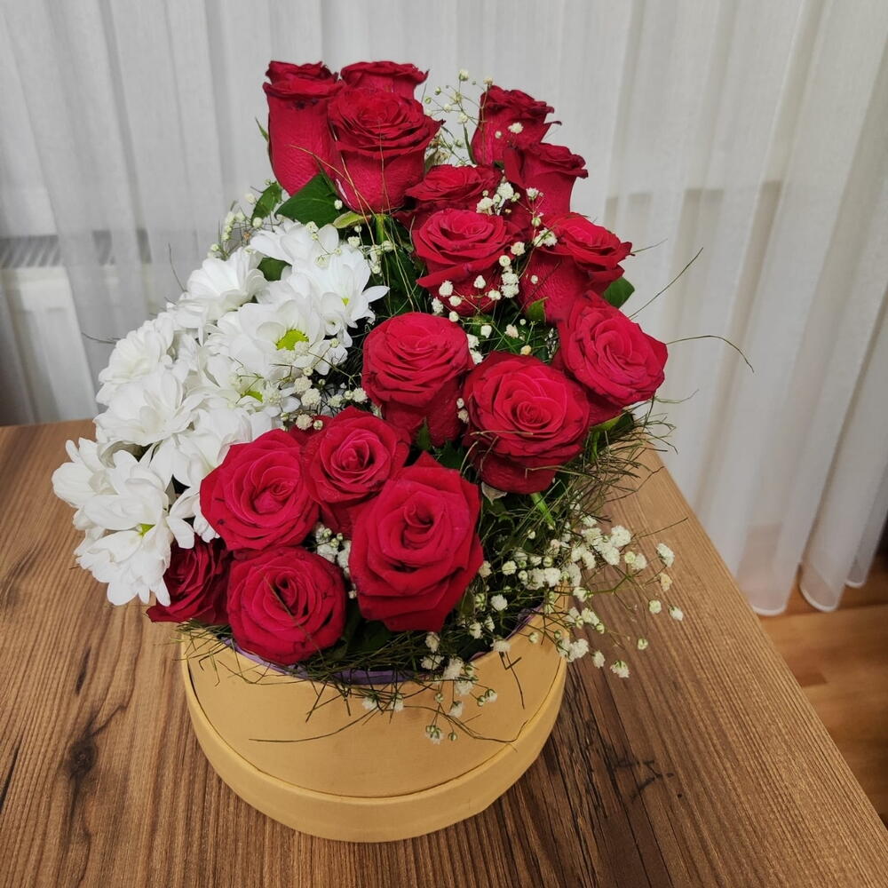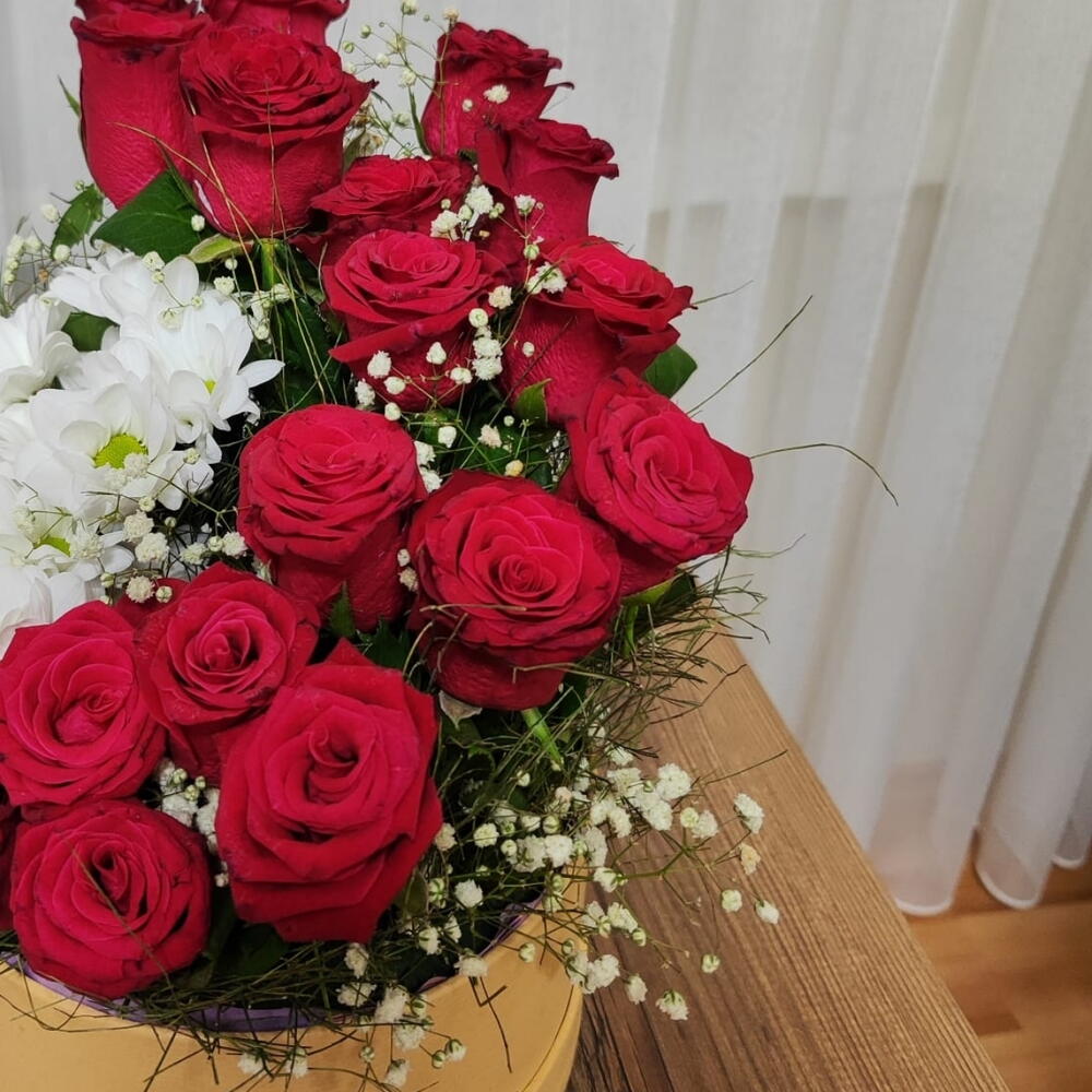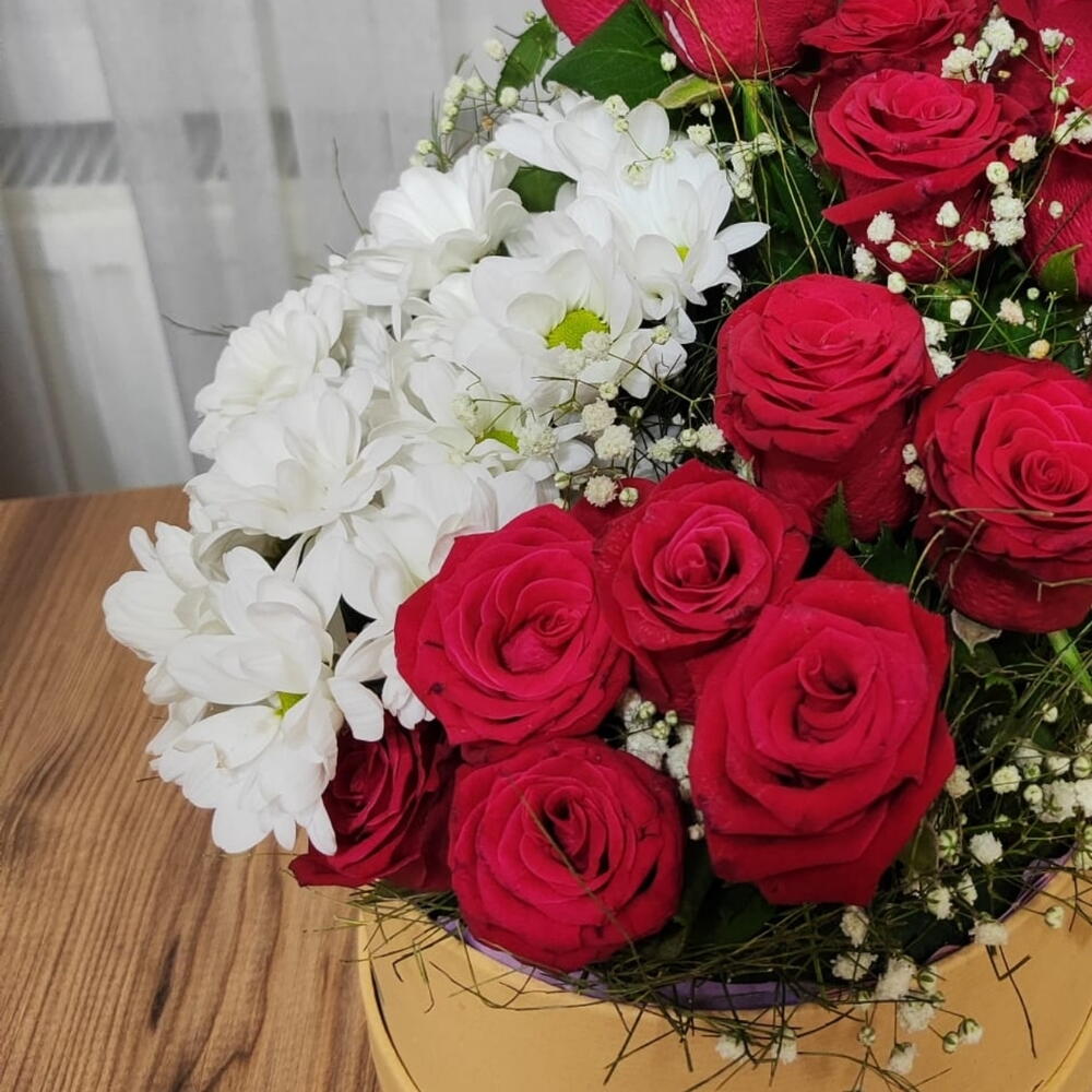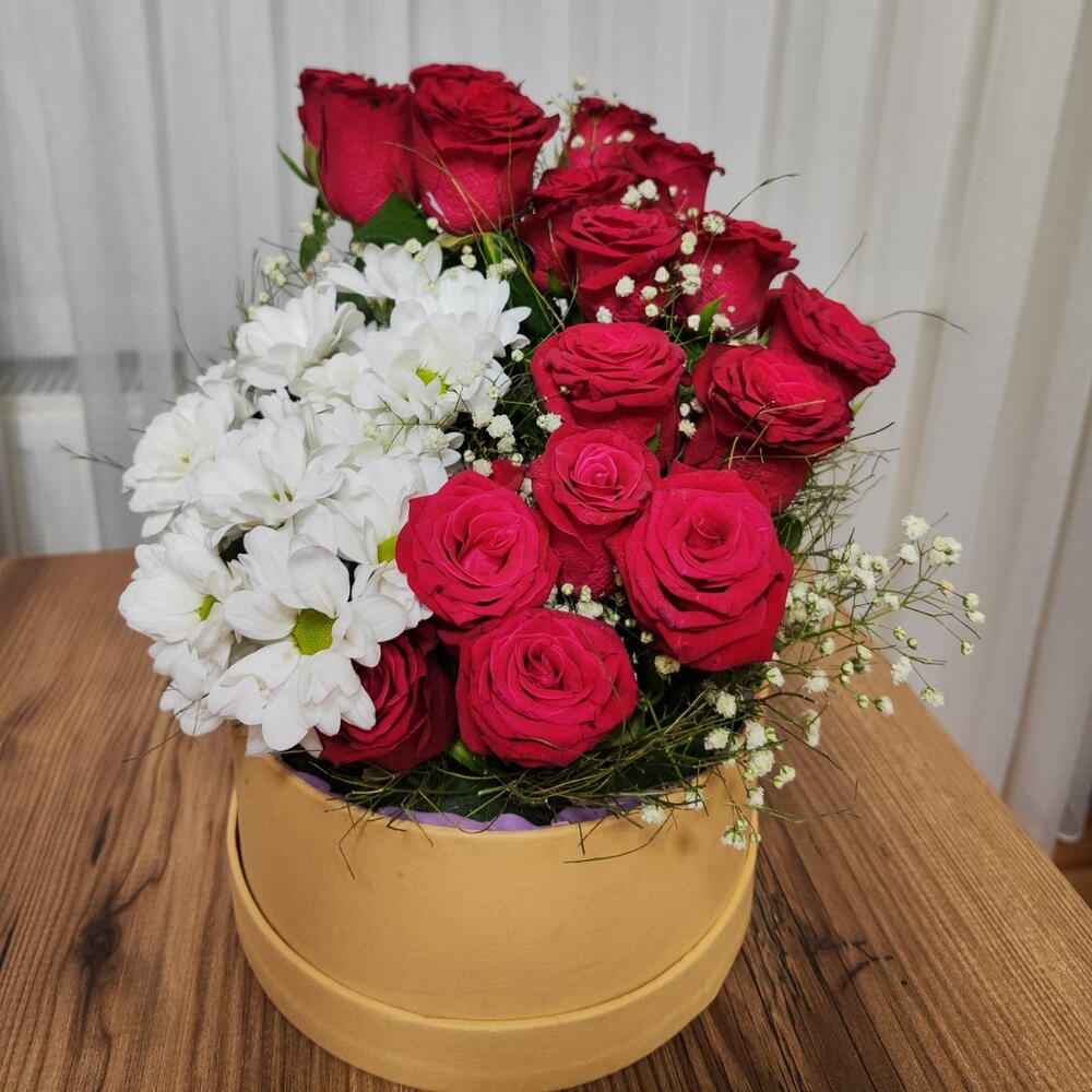 Kutuda 15 gül ve papatya aranjmanı ile sevdiklerinize farklı bir tasarım ile hem şaşırtın hem sevginizi ifade edin