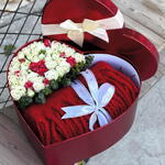 beyaz gül - 20 adet kirmizi gül - 5 adet atkı - 1 adet