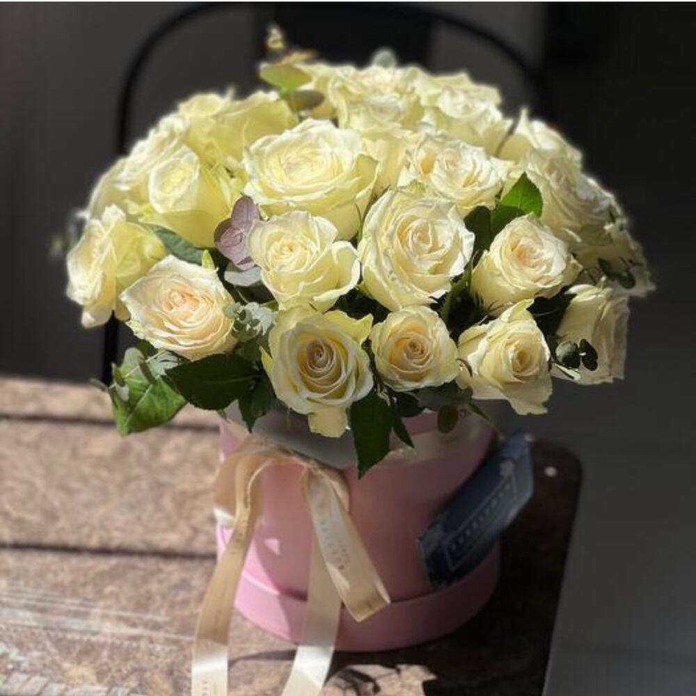 White rose - 27 adet okaliptüs - 8 adet kutu - 1 adet