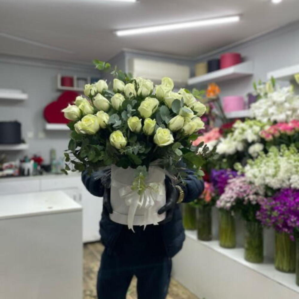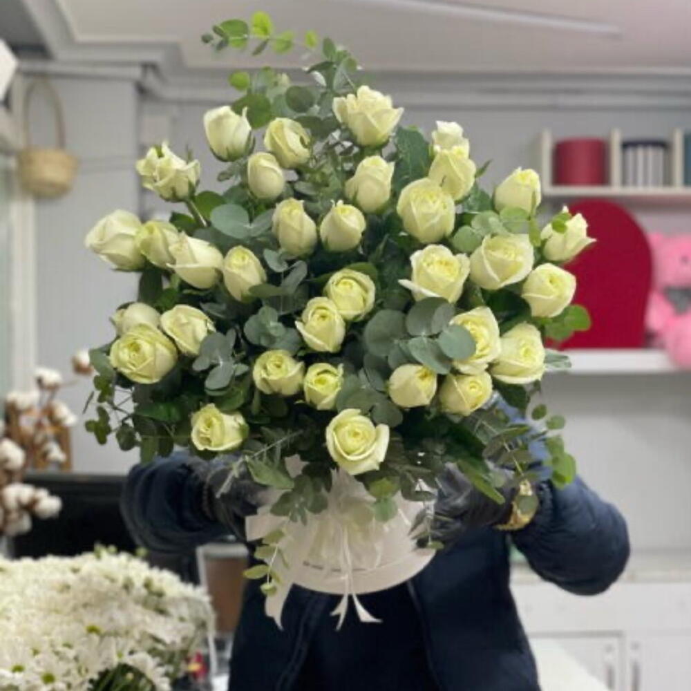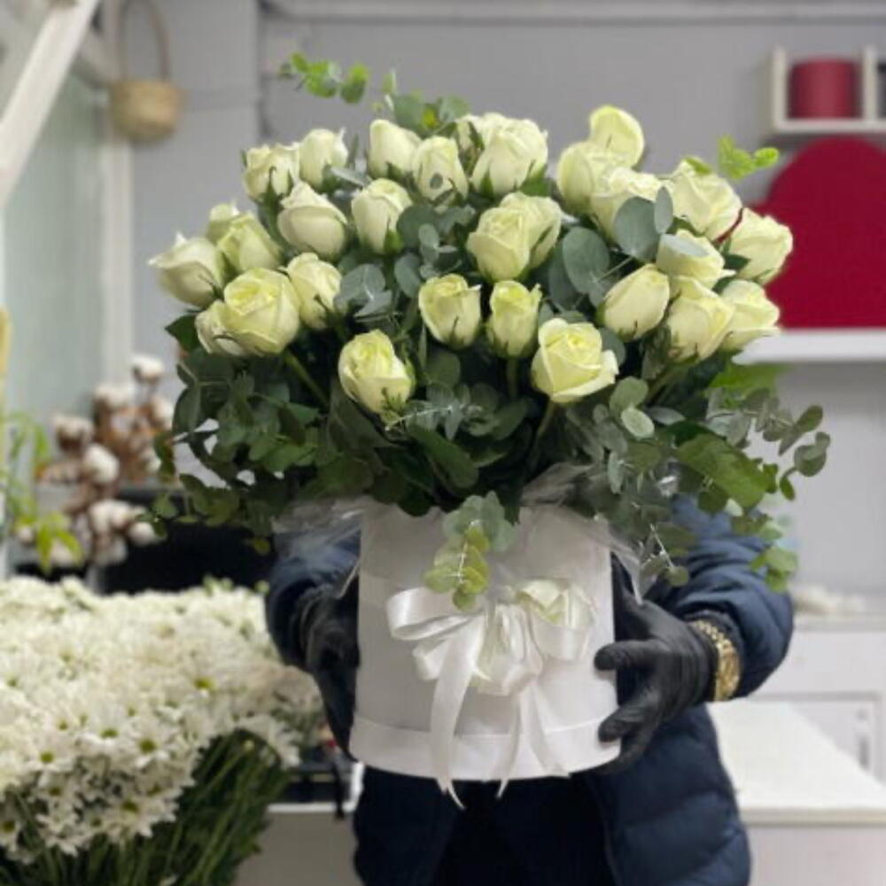 White rose - 33 adet white box - 1 adet okaliptüs - 28 adet