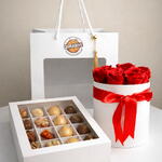 Aşkı ve lezzeti bir arada sunan özel tasarım hediye seti ❤️ Belçika çikolatası kaplı, çeşitli dolgularla hazırlanmış enfes ceviz kurabiyeleri ve yanında şık bir kutuda 7 adet kokulu yapay gül ile zarafetin en özel hali. Özel günler için hem kalıcı hem lezzetli bir sürpriz