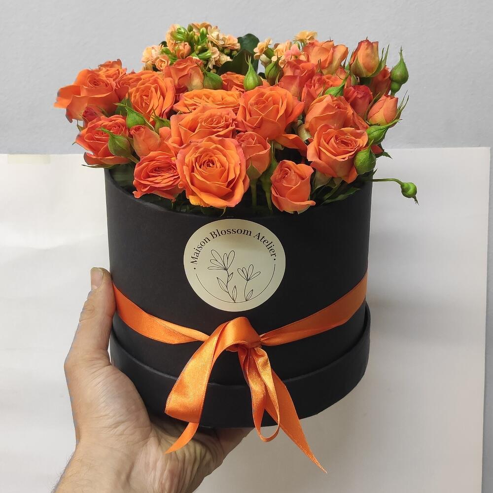 Kutuda çiçekler turuncu çardak guller ve kalancholar