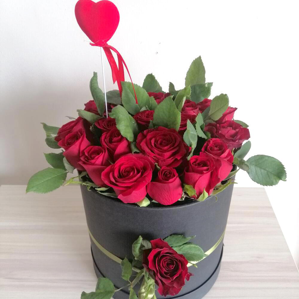 kırmızı gül - 21 adet siyah kutu - 1 adet kalp çubuk - 1 adet