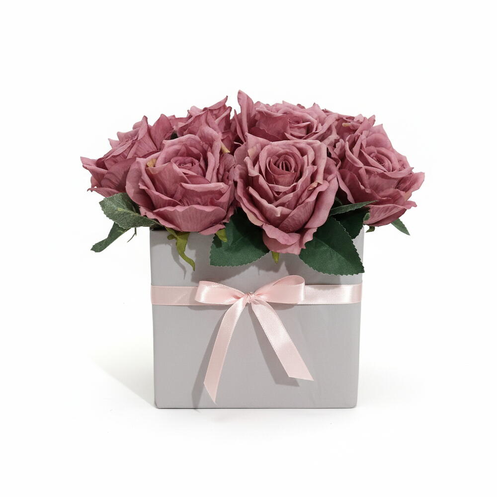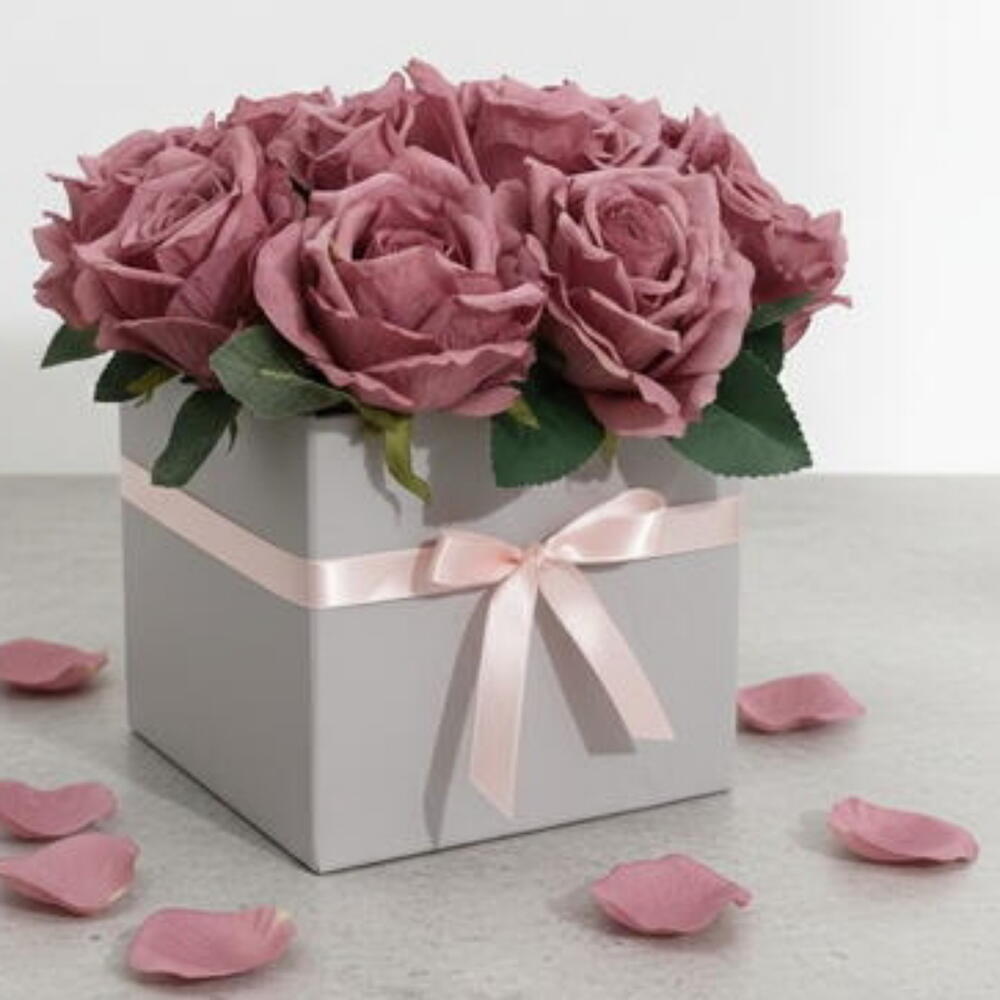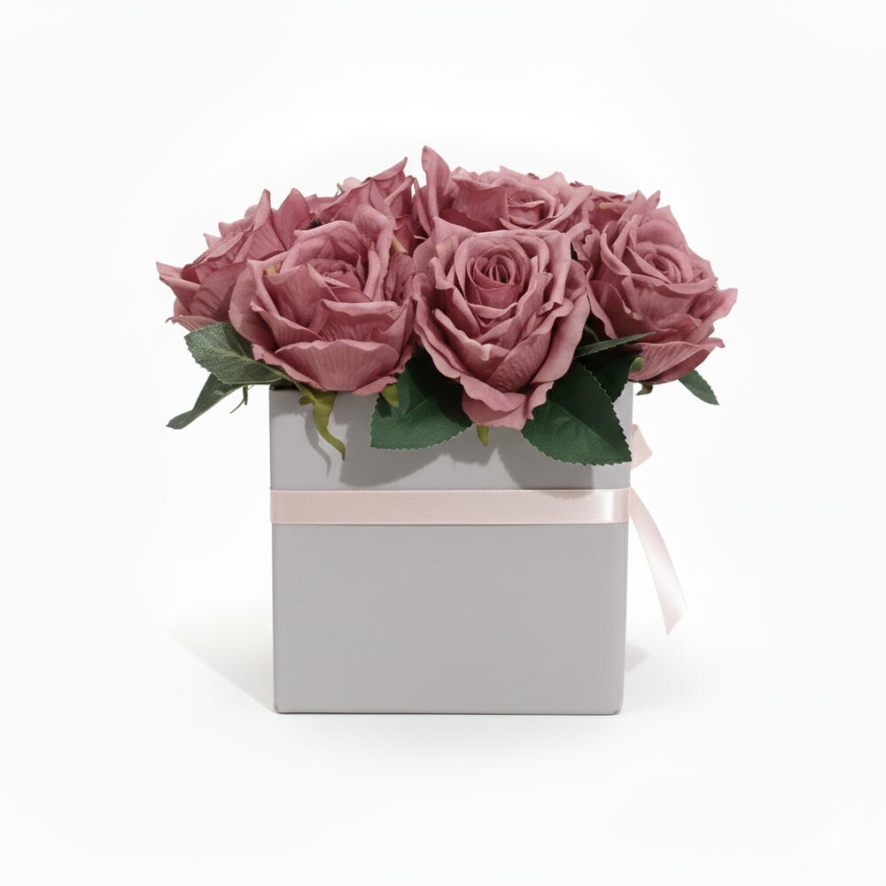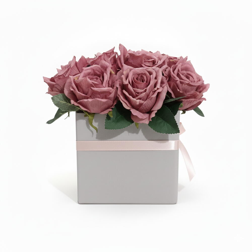 Satışa sunduğumuz bu yoğun ve dolgun yapay gül aranjmanı, özel günleriniz için özel olarak tasarlanmıştır. Yüksek kaliteli yapay güller, sade ve modern lila renkte bir kutu içine yerleştirilmiştir. Canlı ve zengin gül rengi (mauve/koyu pembe) ile dikkat çeker. Malzeme Kalitesi: Birinci sınıf kumaş materyalden üretilmiştir. Kolay Bakım: Suya, toprağa veya budamaya ihtiyaç duymaz; sadece tozunu almanız yeterlidir. Kullanım Alanı: Ev dekorasyonu, ofis masası,anneler günü, kadınlar Günü veya özel gün organizasyonları için profesyonel bir seçimdir. Kutu İçeriği: 1 Adet Kutulu Gül Buketi (Yaklaşık X adet gül içerir.)