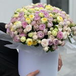 Bu muhteşem çiçek kutusu, 51 adet sprey gül ve 21 adet şakayık gül barındırmaktadır. Bu güller, çarpıcı bir renk kontrastı oluşturarak göz alıcı bir estetik sunuyor. İster misafirlerinizi etkilemek, ister sevdiklerinize özel bir hediye olarak vermek için mükemmel bir seçenek. Her bir çiçek, size doğanın en güzel renklerinde kesintisiz bir çiçek deneyimi yaşatmak için özenle seçilmiştir. Bu kutu, çiçeklerin zarafetini ve doğal güzelliğini evinizin veya ofisinizin her köşesine taşıyacak.