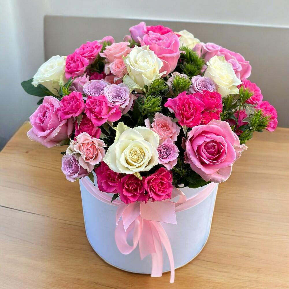 Şık ve romantik bir görünüm sunan bu özel kutulu çiçek aranjmanı, sevdiklerinize zarif bir hediye vermek için mükemmel bir seçim! Pembe ve beyaz güllerin uyumu, kutunun şıklığıyla birleşerek göz alıcı bir tasarım oluşturuyor. Bakım Önerileri: Kutulu çiçeklerin tazeliğini uzun süre koruması için çiçek süngerini 2-3 günde bir nemlendirin. Çiçeklerin canlı kalmasını sağlamak için direkt güneş ışığından ve sıcak ortamlardan uzak tutun. Serin bir ortamda muhafaza ederek çiçeklerin ömrünü uzatabilirsiniz.