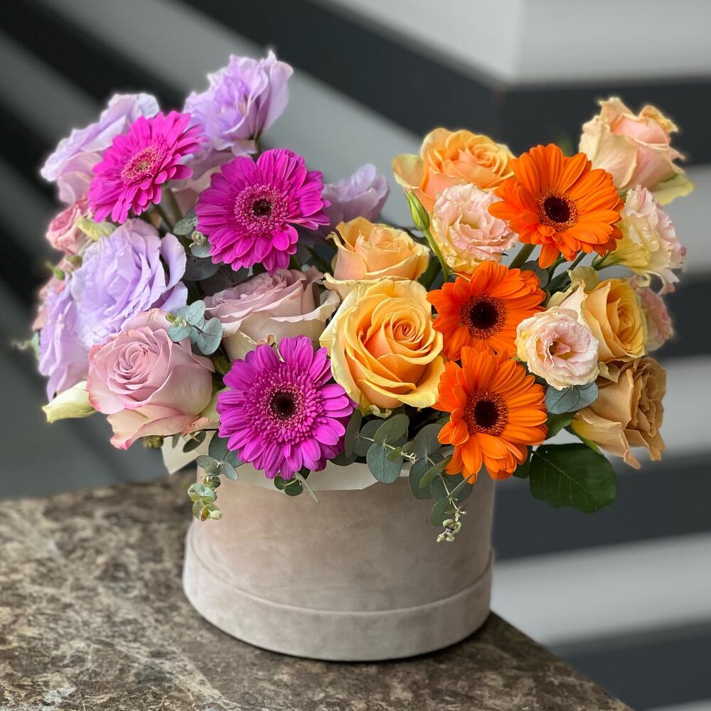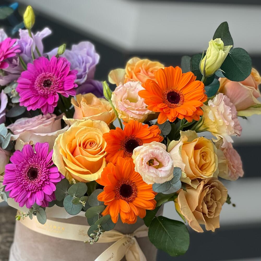 Eustoma - 9 adet gerbera mini - 11 adet okaliptüs - 11 adet roses - 13 adet