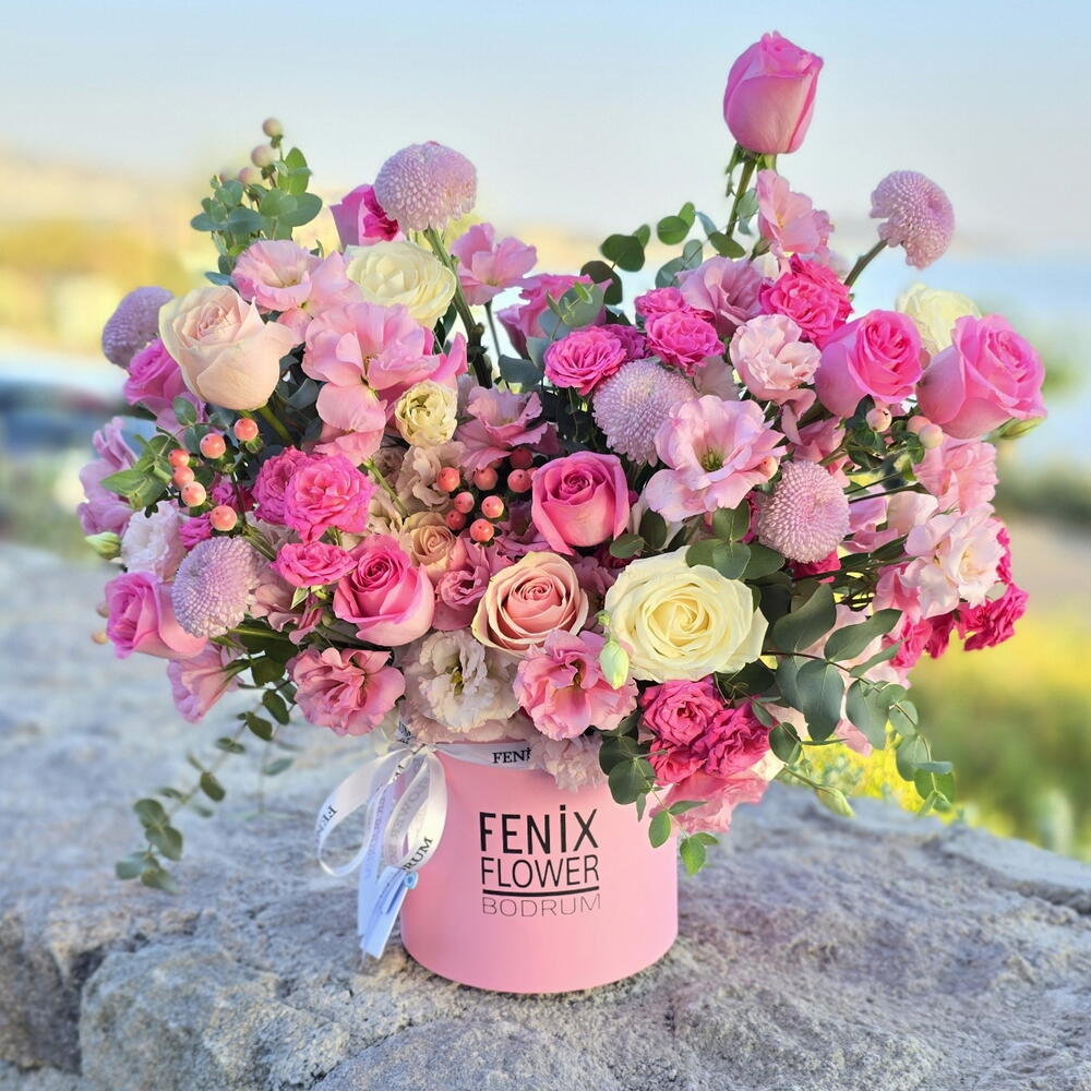 Bu şık kutuda çiçek aranjmanı, 35 adet zarif Eustoma, 15 adet gül, 8 adet Anastasia, 5 adet Hipericum ve 8 adet garnitür yeşillikle özenle hazırlanmıştır. Bu çiçeklerin sofistike birleşimi, herhangi bir odaya sofistike ve zarif bir hava katacaktır. İster birine özel bir hediye olsun, ister evinizin dekorasyonunu zenginleştirin, bu çiçek kutusu mükemmel bir seçim olacaktır. Hayatınızdaki özel bir kişiye ne kadar değer verdığinizi veya ne kadar düşündüğünüzü gösterin, bu çiçeklerin güzelliği ve zarafeti onlara tam olarak bunu aktaracaktır.