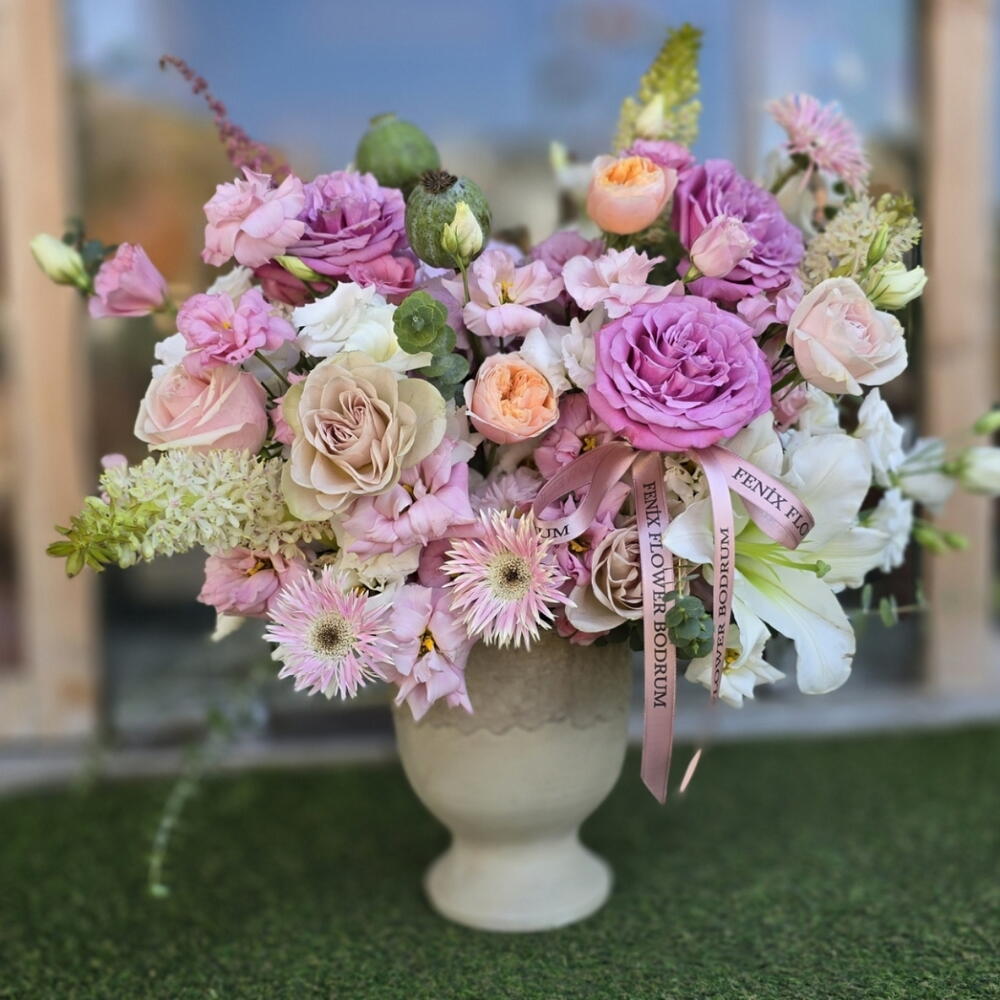 Bu özel kutuda çiçekler, tarzı ve zarafeti bir araya getiriyor. Küçük kutumuz büyük mutluluklara gebe; 60 adet lüks eustoma, 9 adet romantik rosa ve 15 adet ince garnitür, bir araya gelerek bakışlarınızı üzerine çekecek büyüleyici bir aranjman oluşturuyor. Tatlı bir sürpriz yapmak ya da sevdiklerinizi şımartmak için mükemmel bir seçim! Bu çiçeklerin her biri, dayanıklı ve canlılığını uzun süre koruması için özenle seçildi. Kişiselleştirilmiş bu hediye ile sevdiklerinizin yüzünde unutulmaz bir gülümseme yaratın.