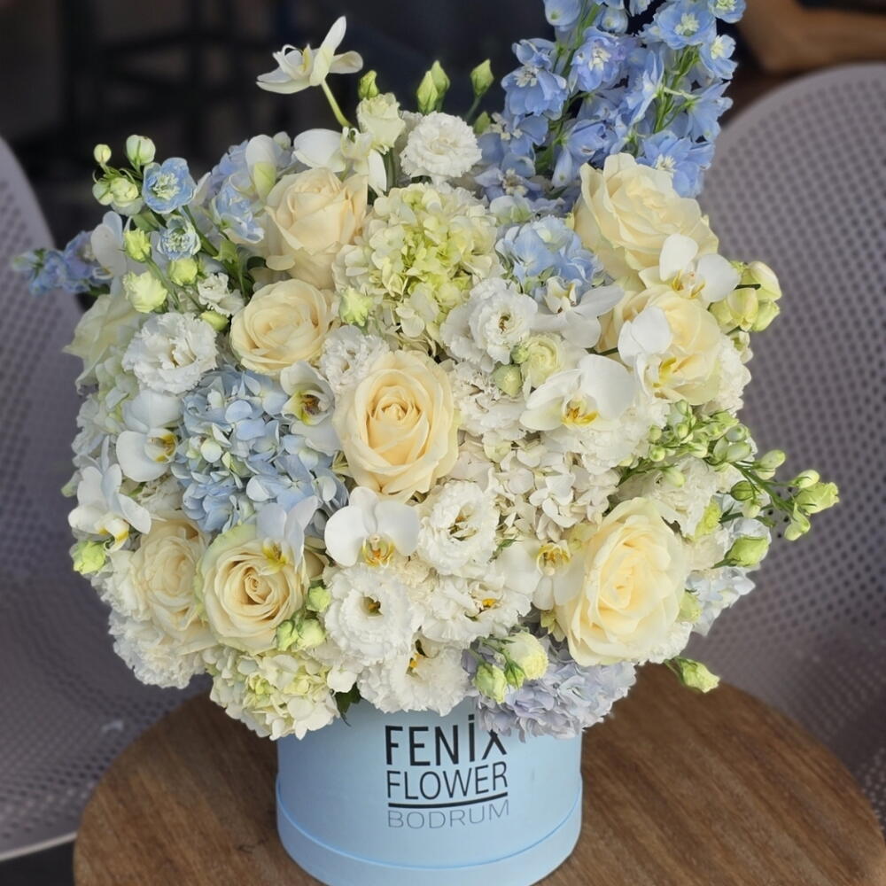 Bu muhteşem kutuda çiçekler koleksiyonu, özenle seçilmiş 21 adet Eustoma, 5 adet Orkide, 5 adet Delphinium, 21 adet Rosa ve 7 adet Hydrengadan oluşmaktadır. Tüm bu çiçekler, hoş ve taze bir aroma yaratır. Kutuda çiçekler, sevdiklerinize ne kadar değer verdiğinizi göstermenin mükemmel bir yoludur. Kendinize veya sevdiklerinize büyüleyici bir hediye olarak bu zarif çiçekleri sunun. Her bir çiçeği titizlikle seçtik ve en güzel ve dayanıklı çiçekleri sunmak için bir araya getirdik. Bu çiçekler, herhangi bir odaya canlık katan mükemmel parlak ve canlı renklere sahiptir.