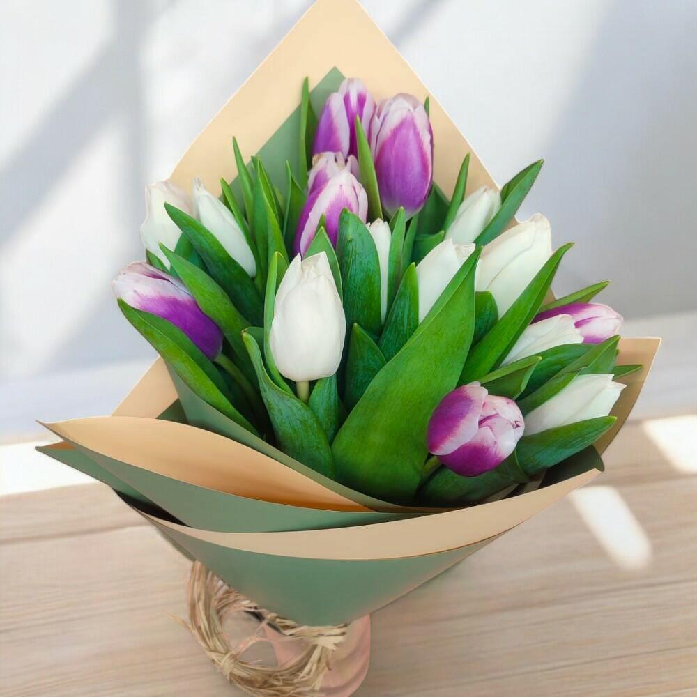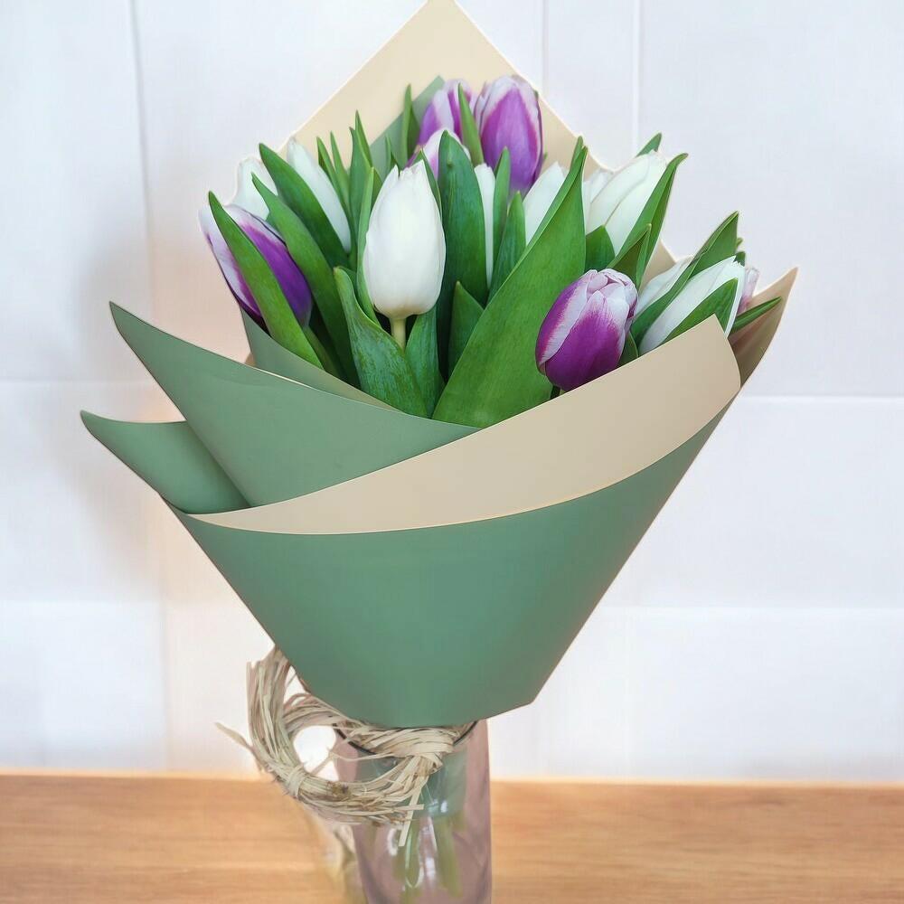 Zarafeti ve sadeliği bir araya getiren bu özel buket, mor ve beyaz tonlardaki 15 adet ithal lale ile hazırlanmıştır. Doğanın taptaze enerjisini yansıtan yeşil yapraklar ve sade, modern ambalaj tasarımıyla her ortamda dikkat çeken bir görünüme sahiptir. Özel günlerinizde sevdiklerinize zarif bir jest yapmak veya kendinize çiçeklerle dolu bir an yaratmak için mükemmel bir seçimdir. Bakım Önerisi: Lalelerin uzun ömürlü kalması için serin bir ortamda, doğrudan güneş ışığına maruz kalmadan saklanması önerilir. Vazo içerisinde çiçeklerin sapları düzenli olarak 2 günde bir çapraz şekilde kesilmeli ve suyu taze tutulmalıdır. Ambalajı çıkardıktan sonra laleleri geniş bir vazo içinde sergilemek, hem estetik hem de çiçeğin nefes alması açısından ideal olacaktır.