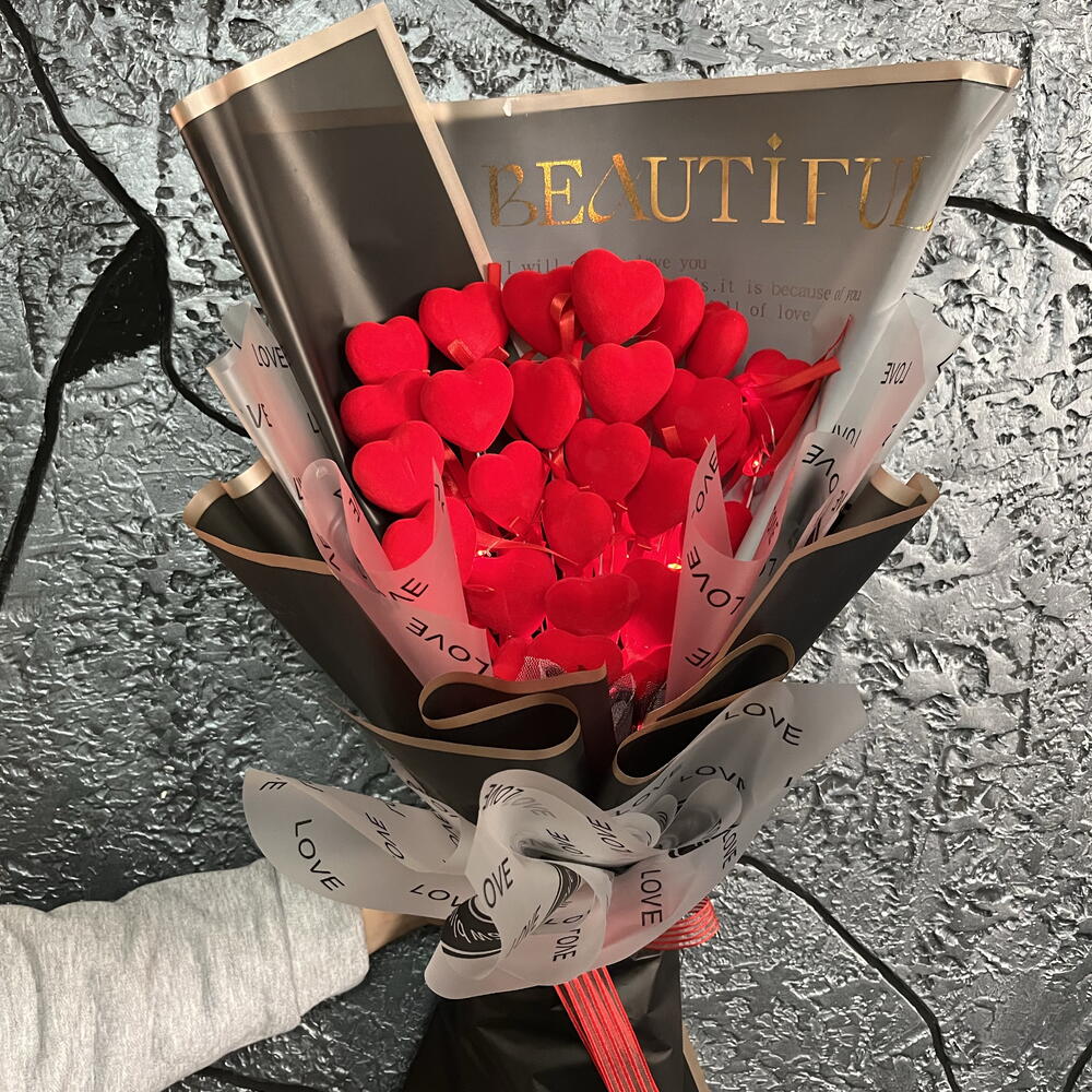 Ledli Kırmızı Kalp Buketi