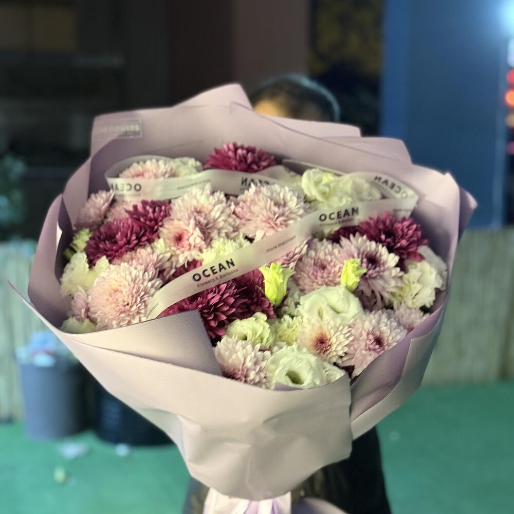 Bu çiçek buketi, 10 adet krizantem, 7 adet lisianthus ve 5 adet dianthustan oluşmaktadır. Onları renk açısından belirgin olarak sıralandığında, derin ve etkileyici bir düzen oluştururlar. Hem minimalist hem de zarif bir izlenim bırakan bu güzel çiçekler, birçok özel anınıza renk katacaktır. Kendi zevkinize göre düzenlenmiş bu çiçek buketini sevdiklerinizle paylaşabilir veya sadece kendinizi şımartabilirsiniz. İçindeki her çiçek, yoğun ve canlı renkleriyle göz alıcı bir görünüm sağlar. İster evinizi dekore etmek için, ister bir sevdiğinize hediye etmek için olsun, bu çiçek buketi her zaman mükemmel bir seçim olacaktır.