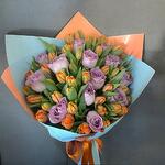Doğanın en canlı renkleriyle sevdiklerinize unutulmaz bir hediye! Lila güllerin romantizmi ve turuncu lalelerin enerjisi bir araya gelerek eşsiz bir buket oluşturuyor. Özel günlerinizde duygularınızı ifade etmenin en zarif yolu!