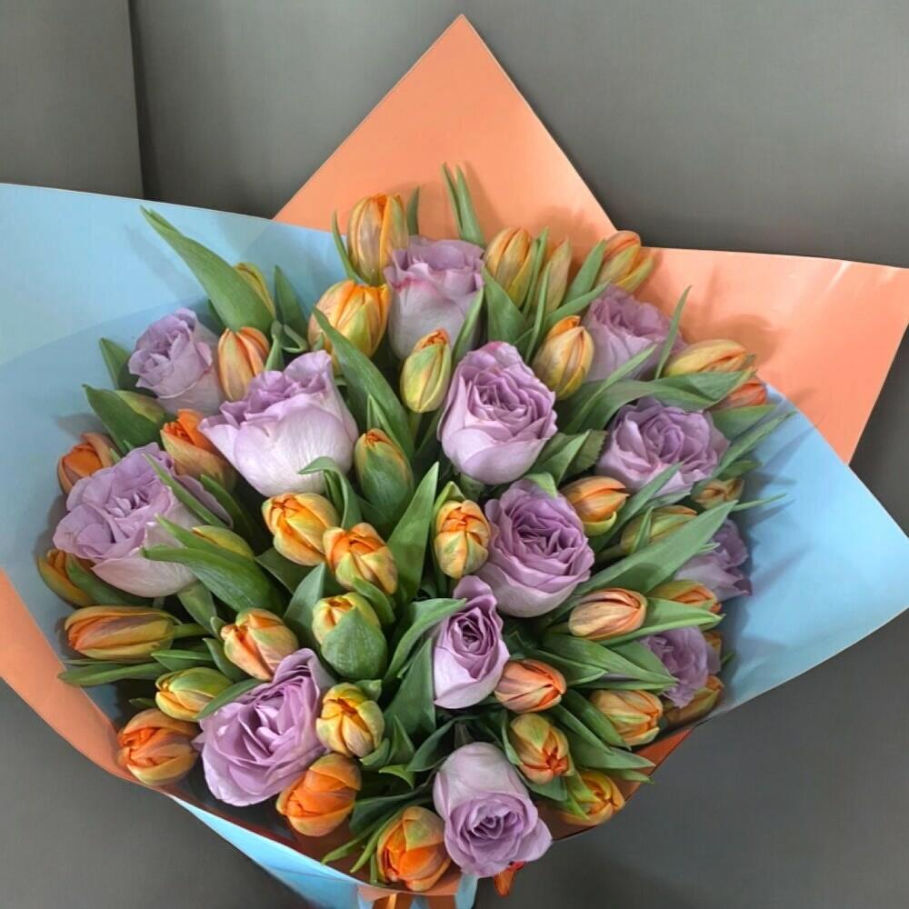 Doğanın en canlı renkleriyle sevdiklerinize unutulmaz bir hediye! Lila güllerin romantizmi ve turuncu lalelerin enerjisi bir araya gelerek eşsiz bir buket oluşturuyor. Özel günlerinizde duygularınızı ifade etmenin en zarif yolu!