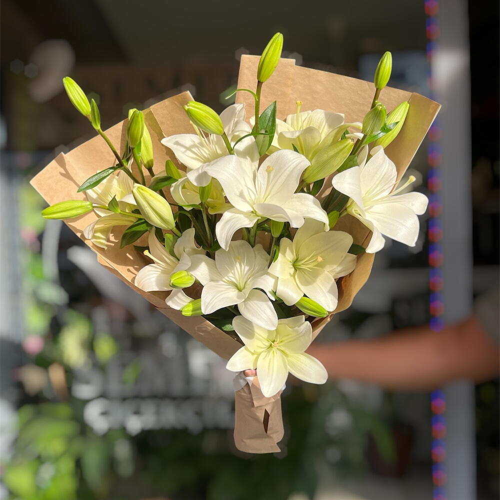 Taptaze lilyumlarla mis kokulu bir buket 💐