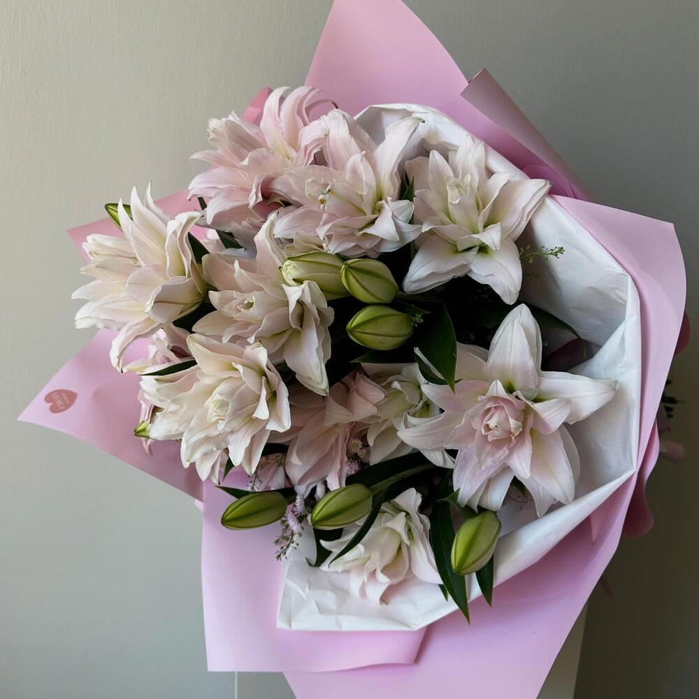 Bu çarpıcı çiçek buketi, 7 adet pembe katmerli lilyum ile zarif ve sofistike bir hava yaratır. Bu çiçekler, her türlü özel anı süslemek için mükemmel bir seçenektir. Buket, birçoğunu büyüleyen, unutulmaz bir güzellik sunar.