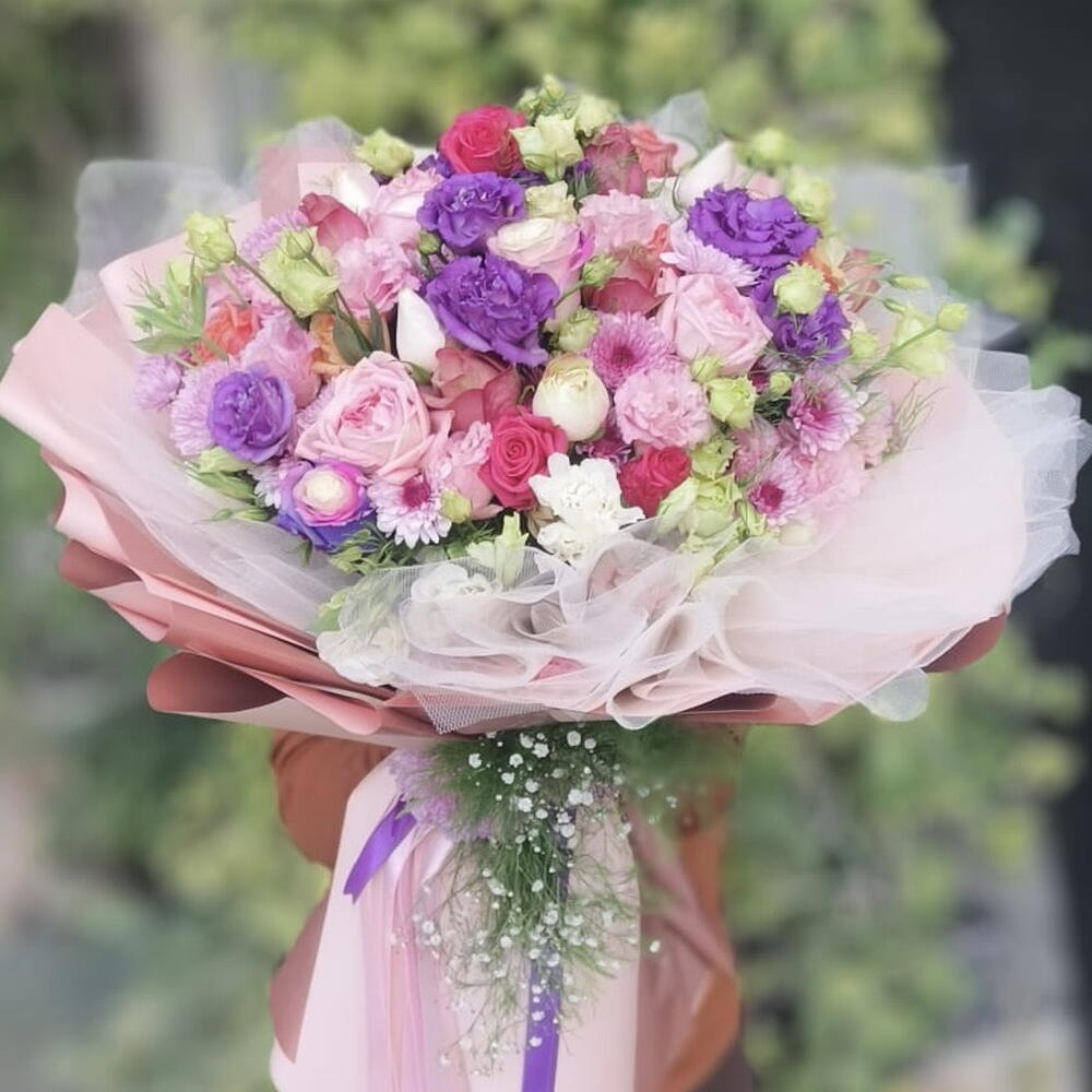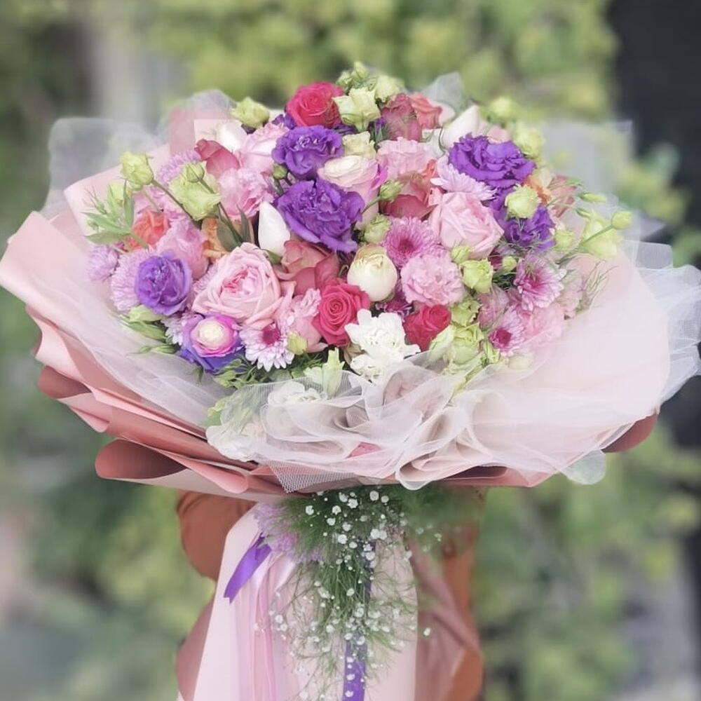 Bu çiçek buketi, 35 adet lisyantus ve 10 adet mevsim çiçeği ile dikkat çekicidir. Bu çarpıcı buket, dikkatlice seçilen taze çiçeklerden oluşur ve sahip olduğu doku ve renklerle her odaya canlılık katar. Lisyantuslar ve mevsim çiçekleri, zarif görünümleri ve uzun ömürlülükleri ile bilinir, bu nedenle bu buket, hem kendinizi hem de sevdiklerinizi günlerce mutlu eder. Çiçeklerin doğal güzelliklerini alın, sevdiklerinize özel bir hediye verin ya da kendi yaşam alanınıza biraz doğa katacak bu çekici buketi kaçırmayın!