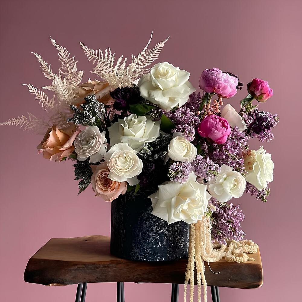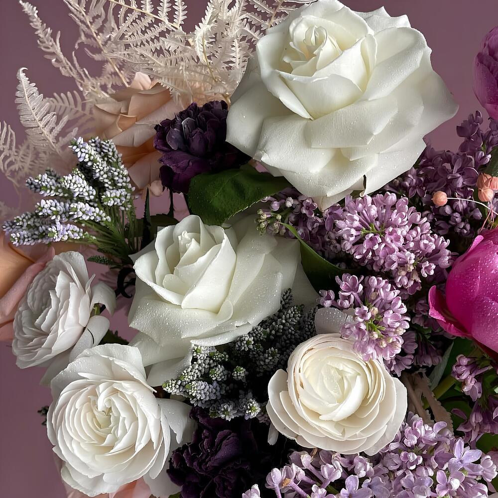Görkemli ve zarif tasarımıyla Lüks Zarafet Aranjmanı, sofistike ve romantik bir atmosfer yaratmak isteyenler için özenle hazırlandı. Krem, lila ve pembe tonlarının muhteşem uyumu ile bu aranjman, özel günleri unutulmaz kılmak için mükemmel bir seçimdir.