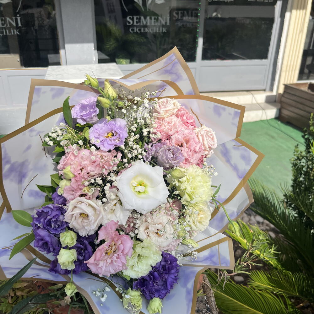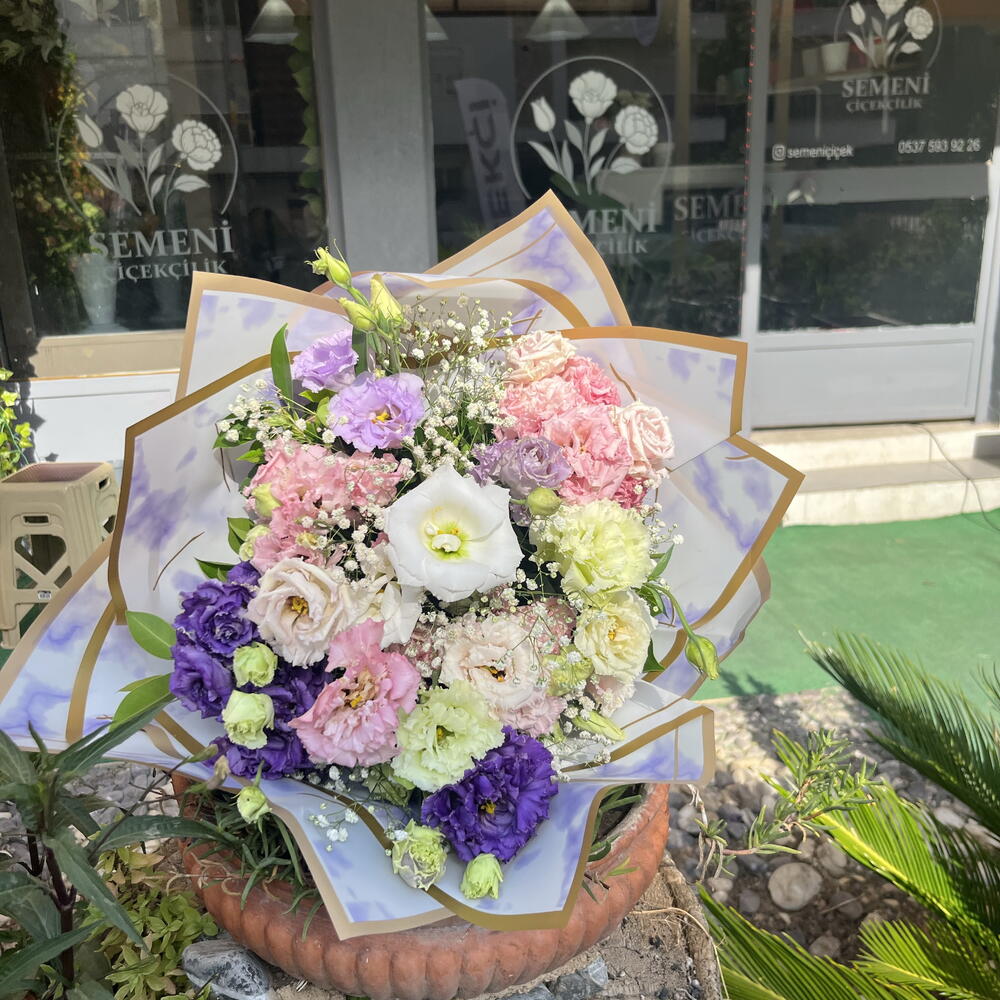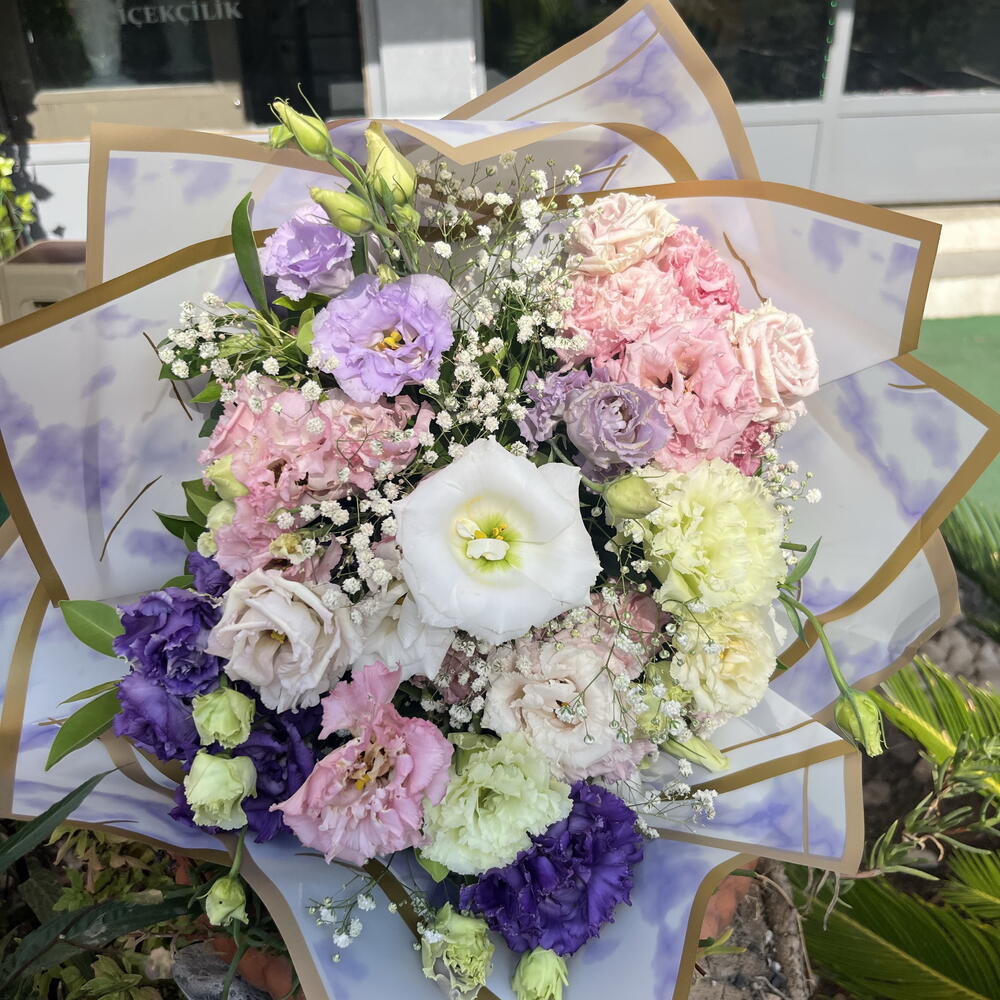 💐 Renklerin Aşkıyla Tanışın! En özel anlara, en renkli dokunuş… Beyaz, pembe, mor ve daha fazlası — her biri zarafetiyle büyüleyen lisyantuslar bu büyük bukette buluştu! 🌈 ✔️ El yapımı ✔️ Canlı taze çiçekler ✔️ Hediye veya özel günler için ideal