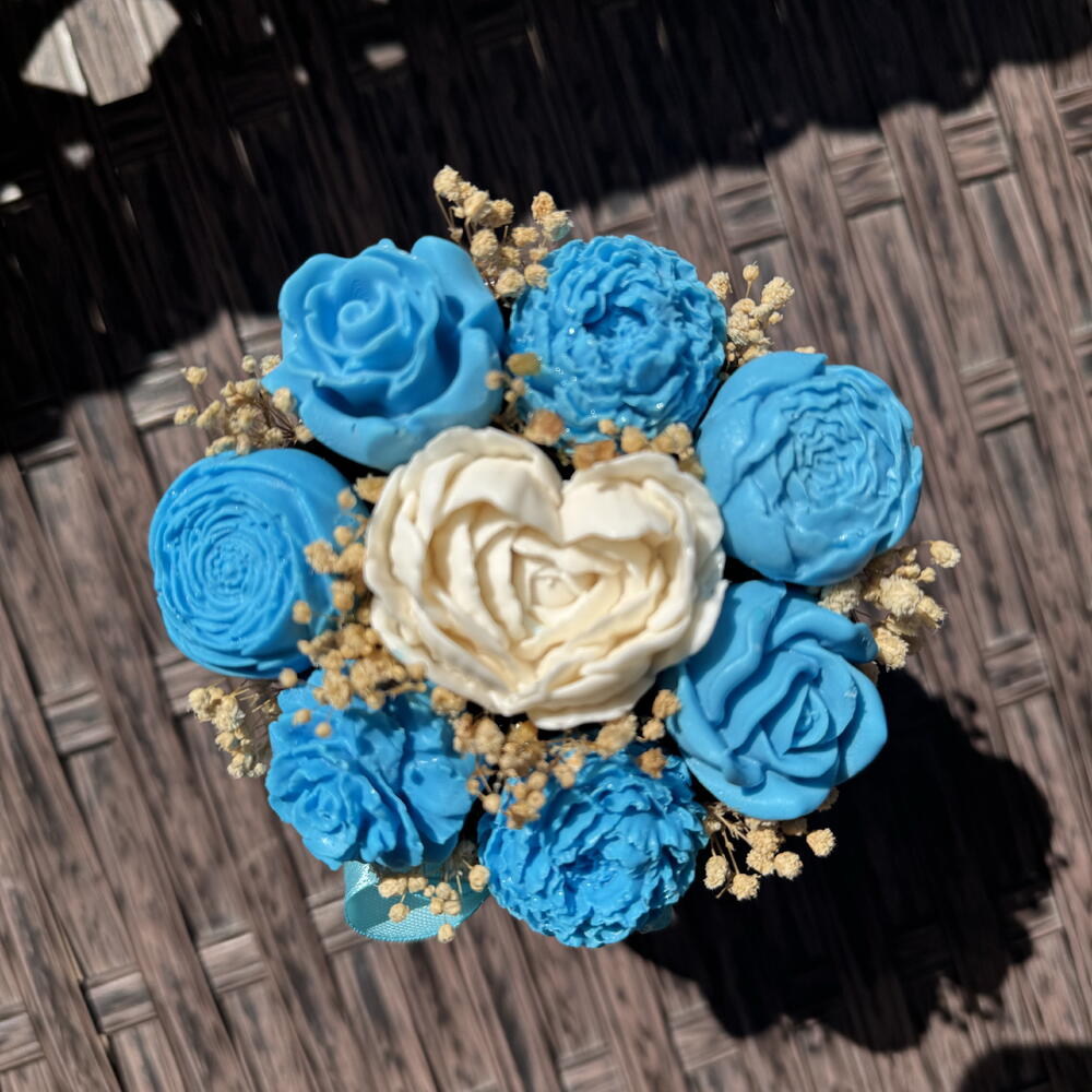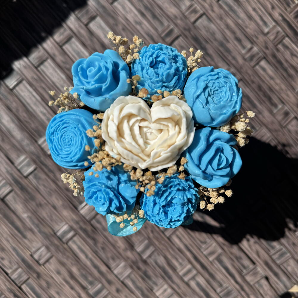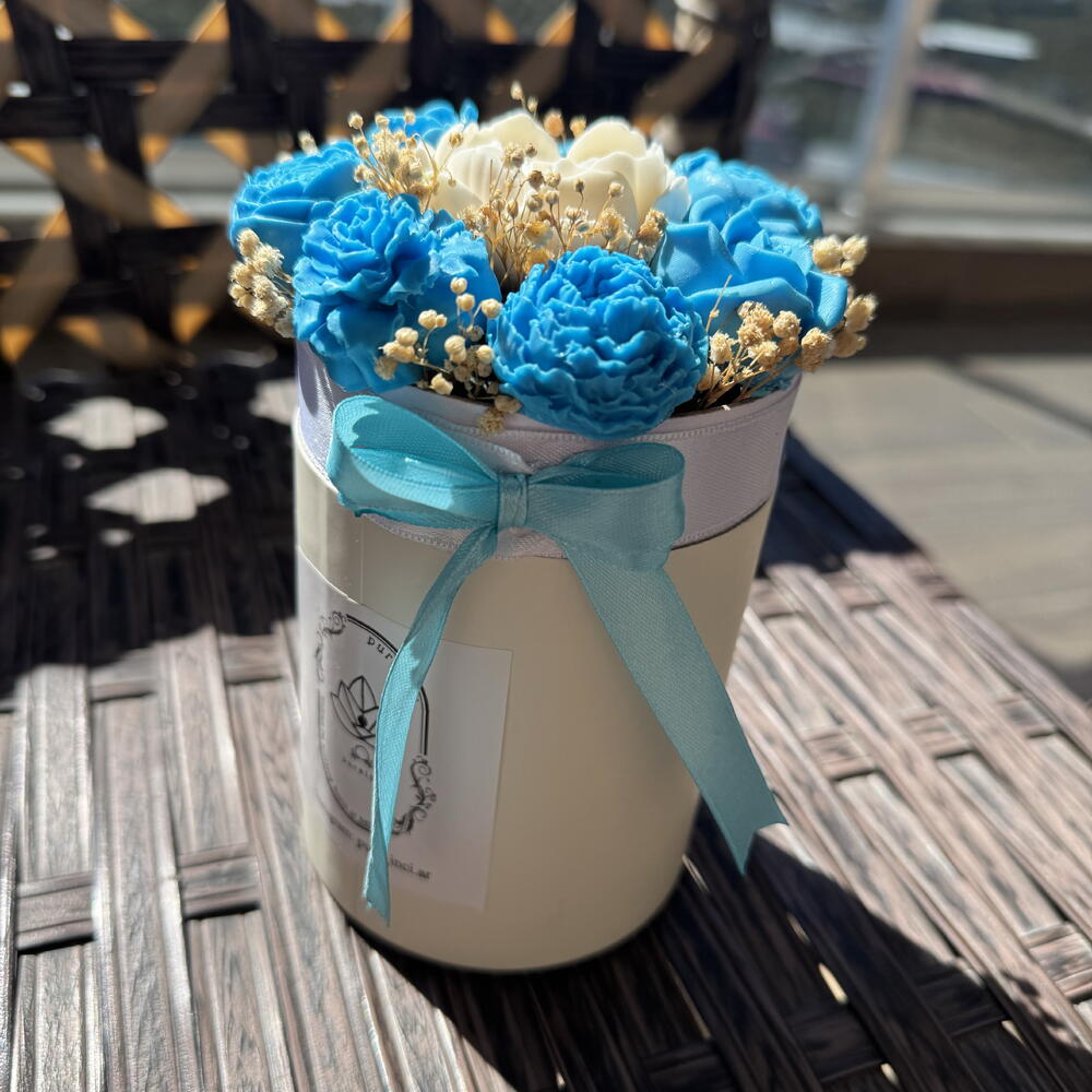 Mavi beyaz sabundan çiçek box M