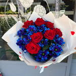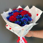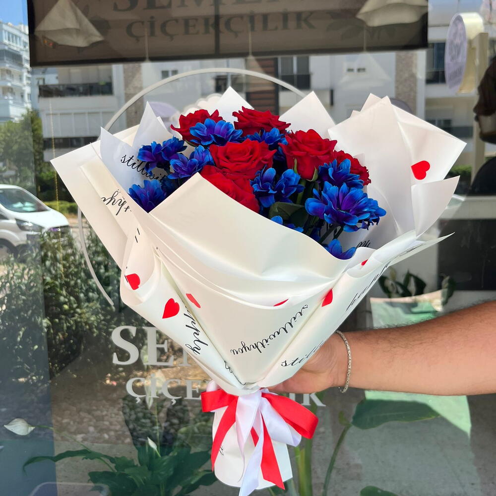 Bu zarif karışık buket, anılar oluşturmak ve özel anları kutlamak için idealdir. İçinde 7 adet nazik mavi papatya ve göz alıcı güzelliğiyle 6 adet kırmızı gül barındırır. Bu çarpıcı çiçek düzenlemesi, doğanın en seçkin renklerini ve biçimlerini yansıtarak her odaya neşe ve zarafet katar. İster bir doğum günü, yıldönümü ya da herhangi bir özel güne ışık tutmak için, bu karışık buket perfect bir seçenek olacaktır.