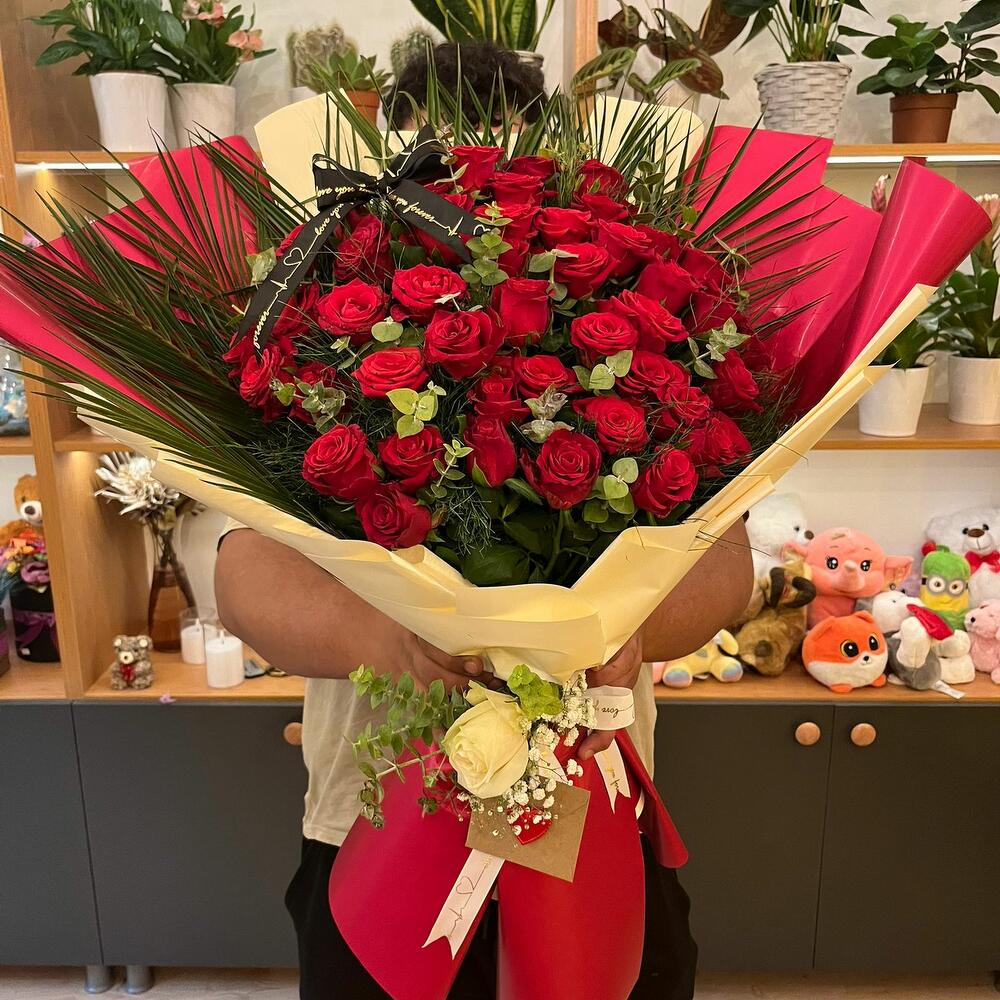 MEGA BOY 51 Lİ KIRMIZI GÜL BUKETI