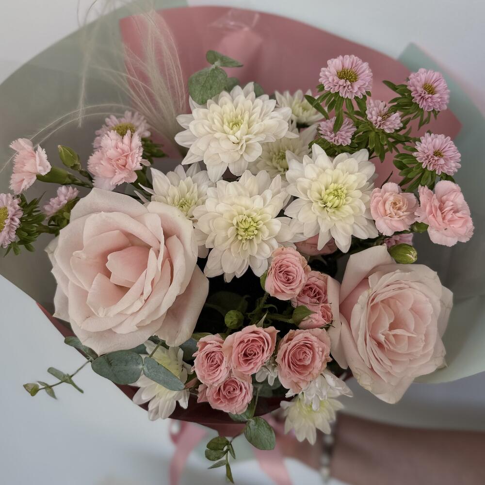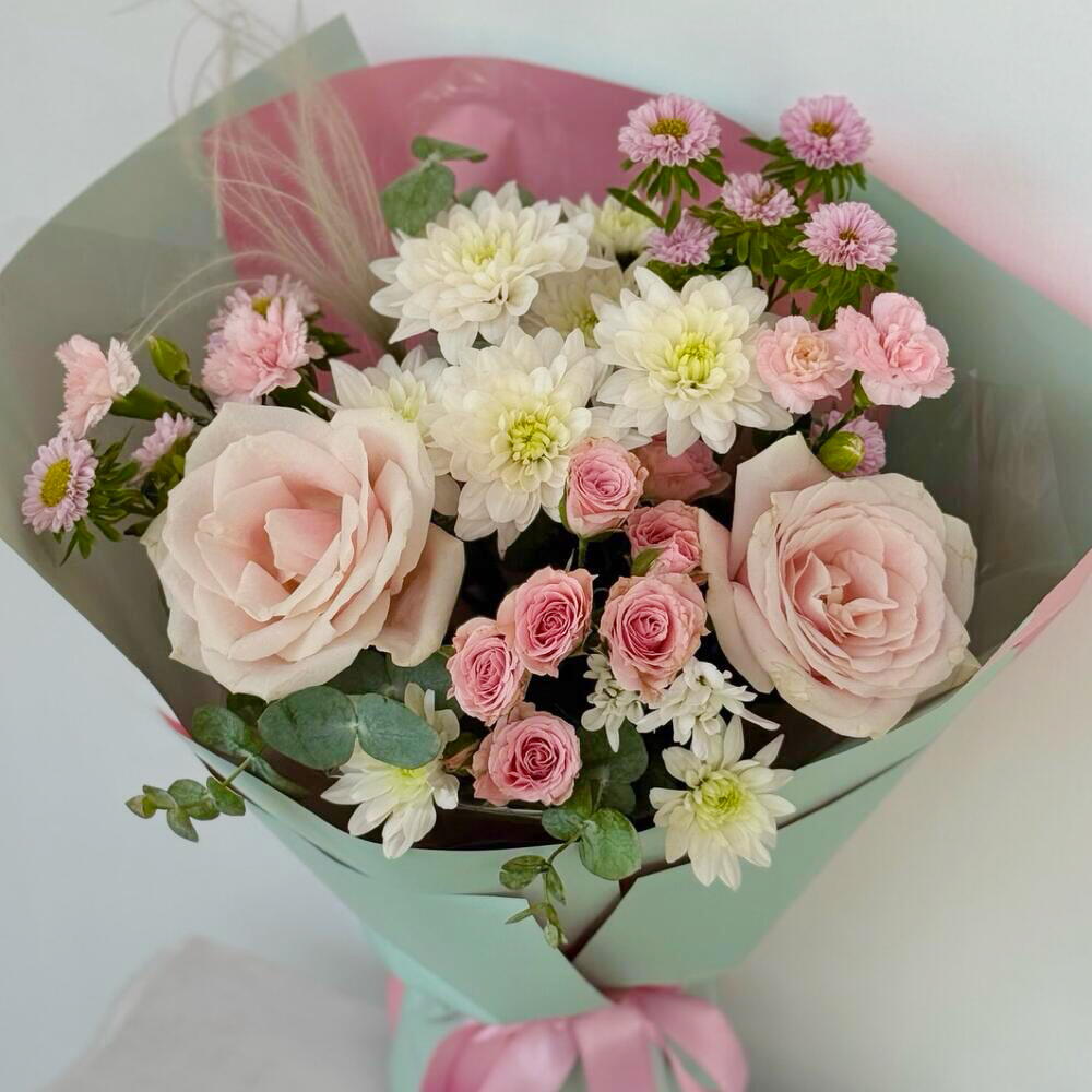 Bu zarif Karışık Buket, çeşitli çiçeklerin dikkat çekici birleşimini sunar. İçerisinde 2 adet narin sprey gül, romantik bir hava katan 2 adet gül, ferah kokusuyla bilinen 2 adet karanfil ve zarif 2 adet krizantem bulunmaktadır. Her bir çiçek, buketin genel estetiğine katkı sağlayacak şekilde özenle seçilmiştir. Bu buket, her türlü özel gün için mükemmel bir seçim olacaktır.