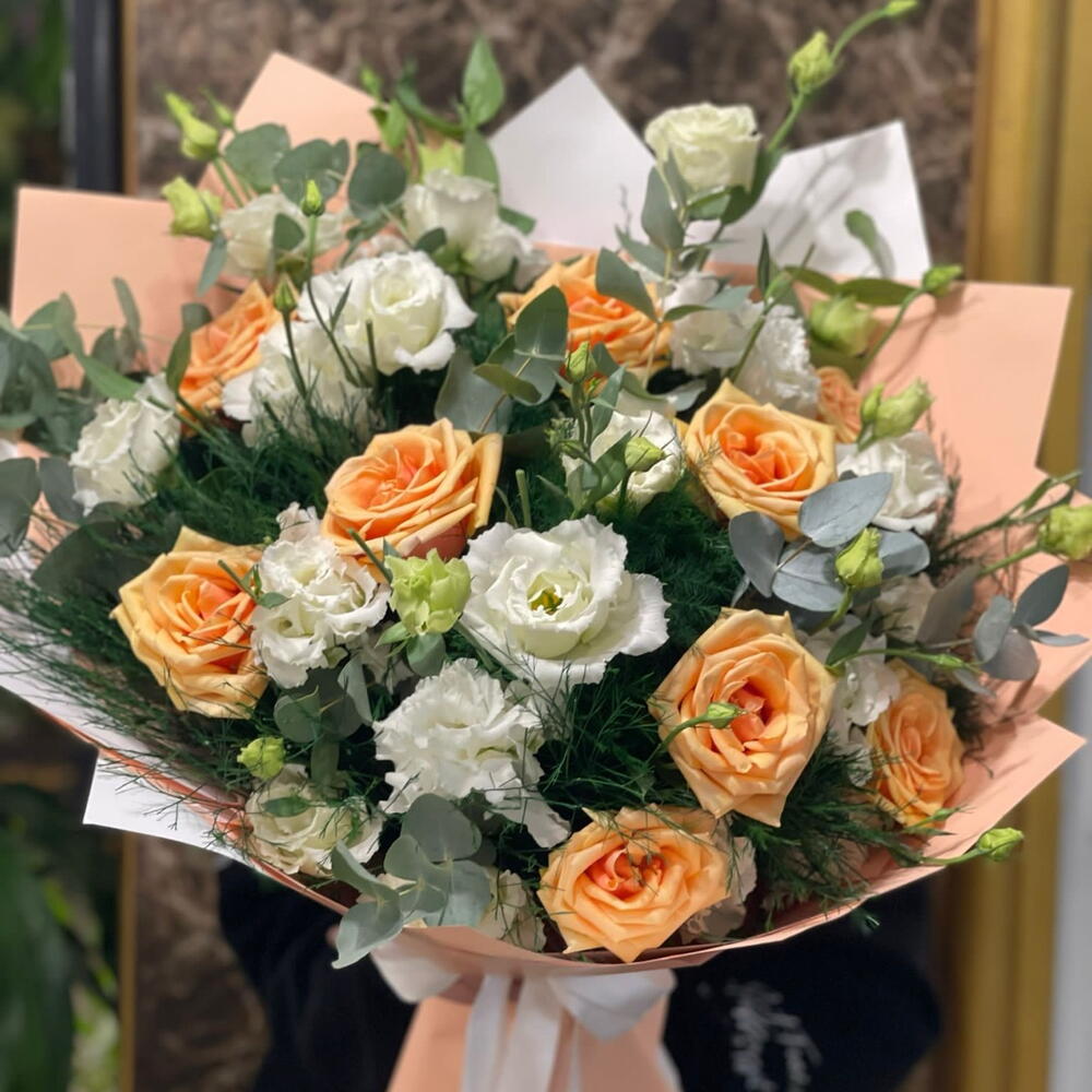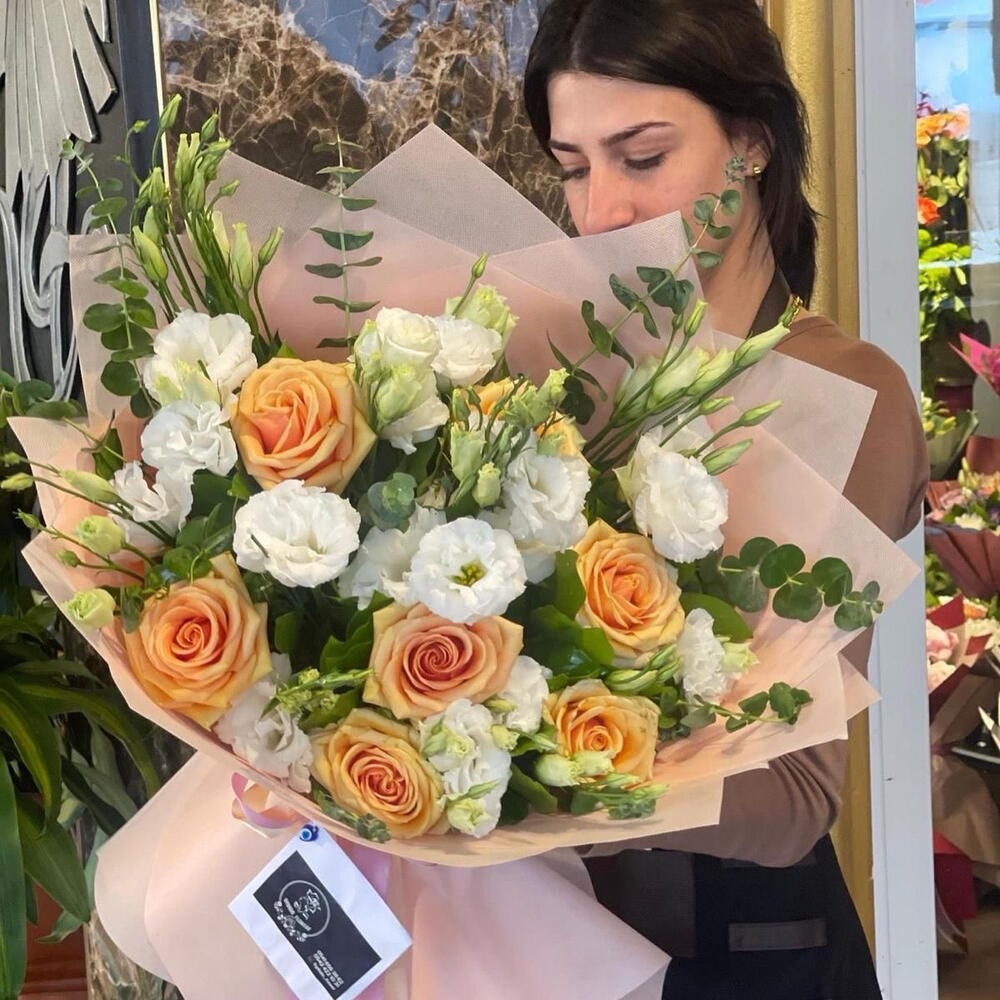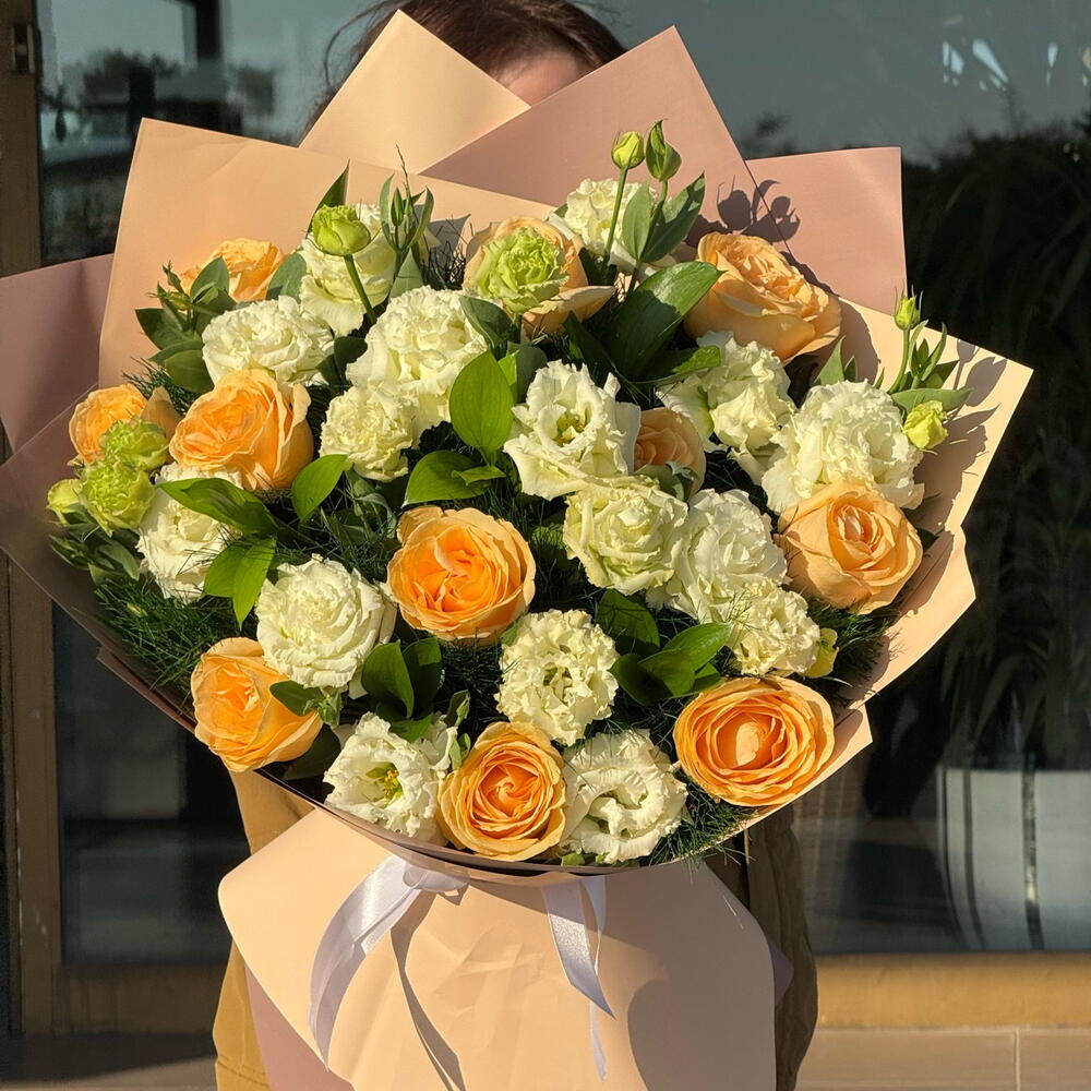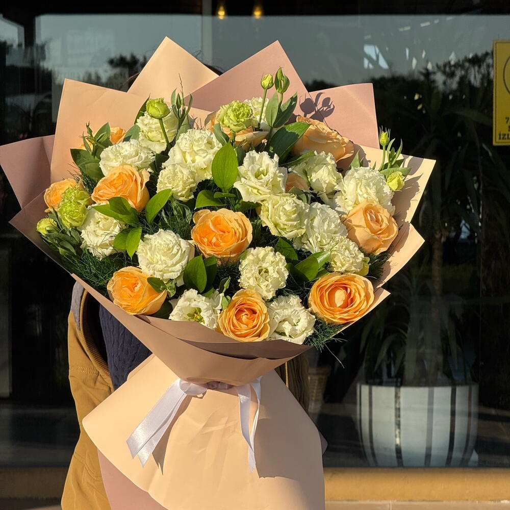 Çiçekçi Özel Düzenlememizle çiçek dünyasının büyüsünü deneyimleyin. Bu göz alıcı buket, beş büyüleyici Lisyanthus ve yedi Hardal Gül gülünü bir araya getirerek, eşsiz renklerini ve kokularını bir araya getirerek zarif bir ifade yaratıyor. Duygularınızı ifade eden, inkar edilemez derecede baştan çıkarıcı bir buket ve her durum için mükemmel.