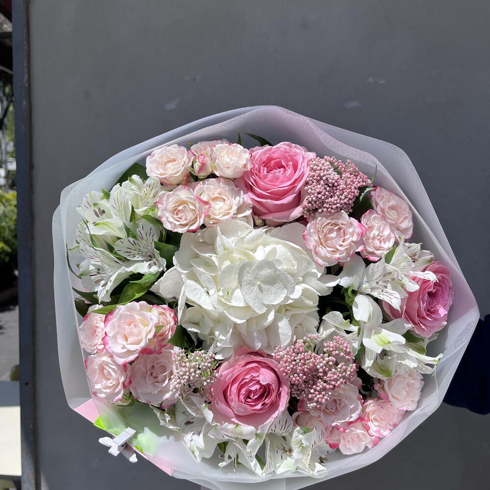 Alstroemeria - 4 adet ortanca - 1 adet gul - 3 adet sprey gül - 4 adet