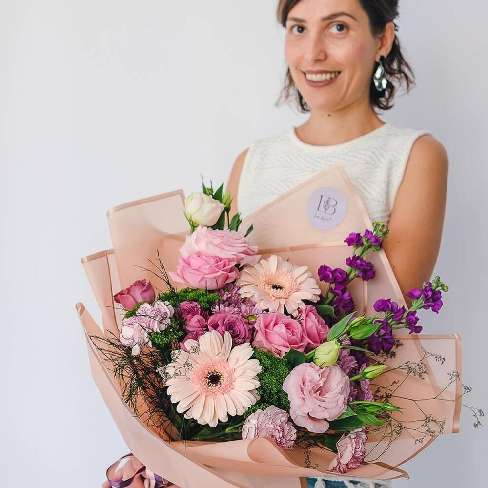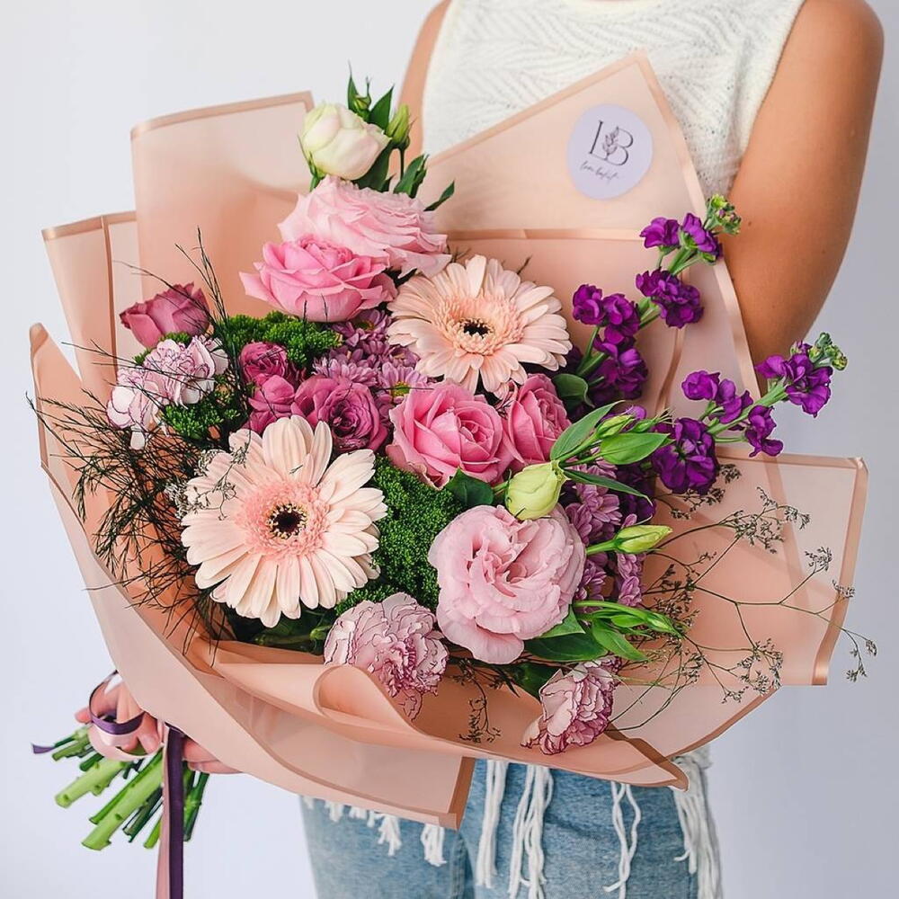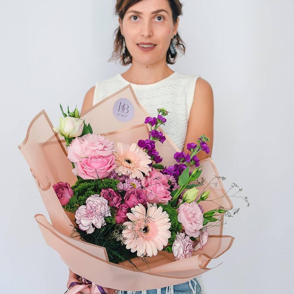 Eustoma - 2 adet Gerbera - 2 adet rose - 4 adet dianthus - 3 adet matthiola - 2 adet bush dianthus - 2 adet krizantem çalısı - 2 adet spray roses - 1 adet