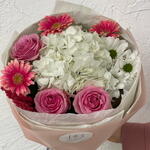 Hydrangea - 1 adet rose - 3 adet mini gerbera - 3 adet krizantem çalısı - 1 adet kuru çiçek - 1 adet