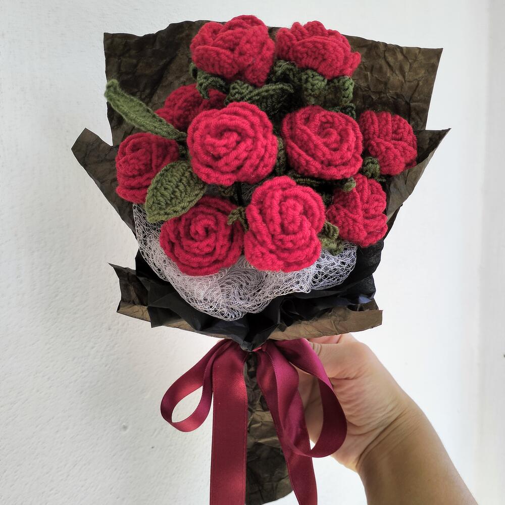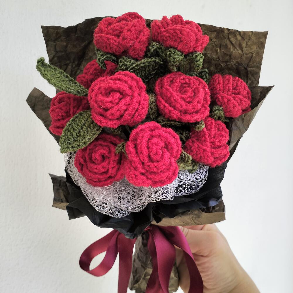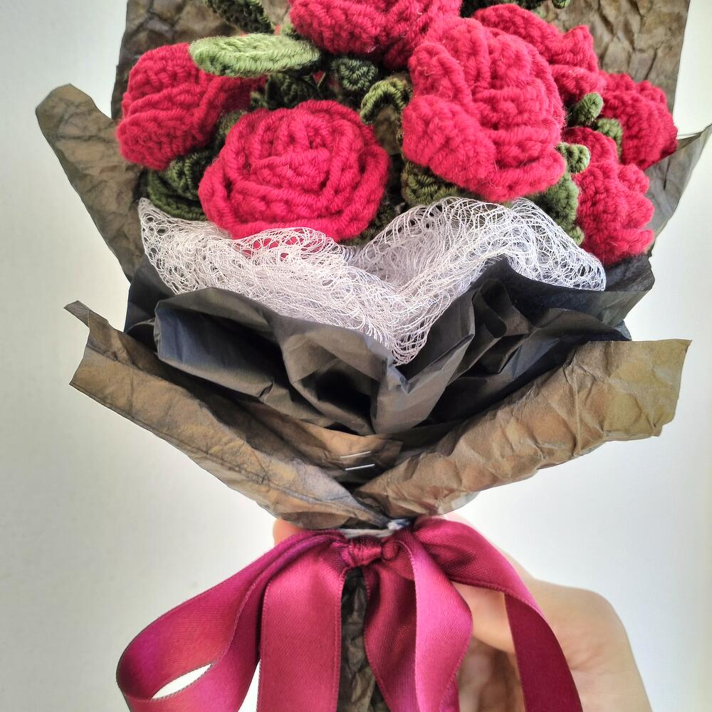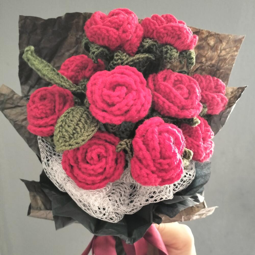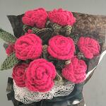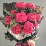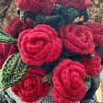Knitted with Coton yarn İn the BOUQUET 2 PCS multihead mini roses with leaves (5 roses with leaves on the 1 branch) TOTAL 10 MİNİ ROSES