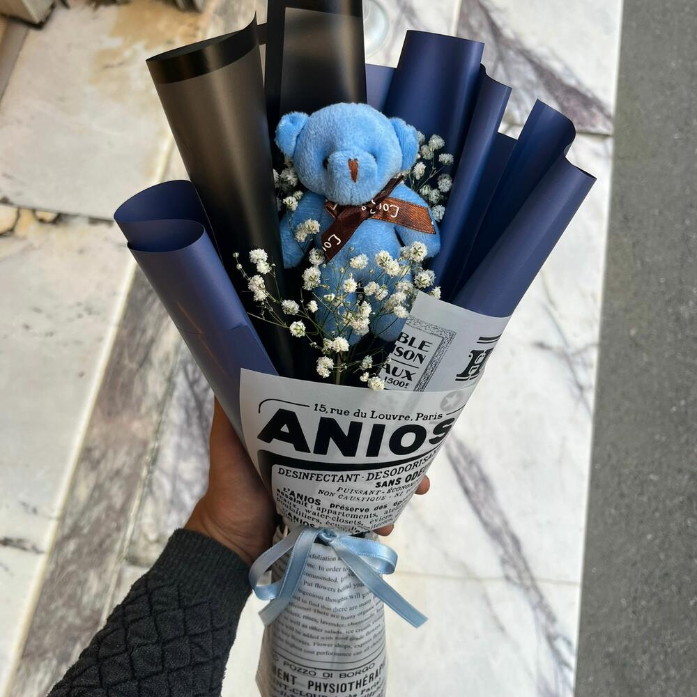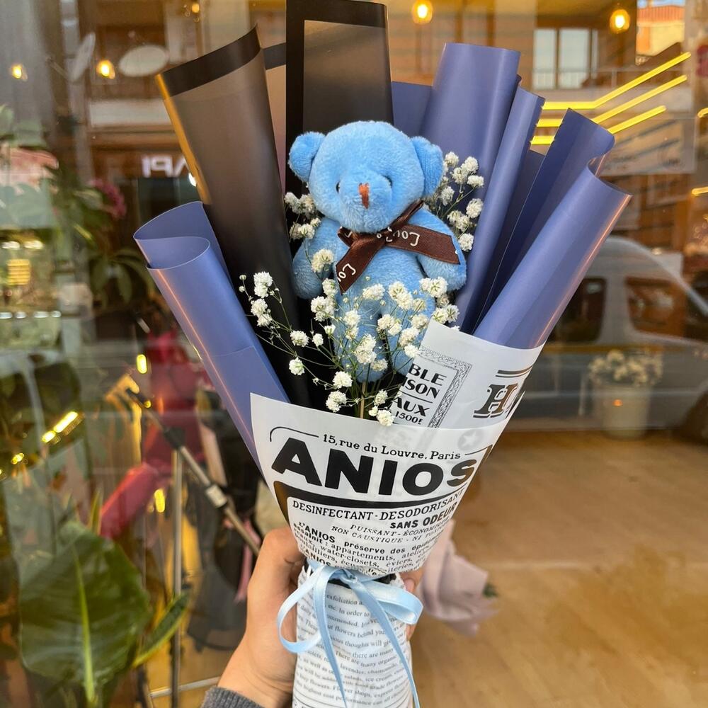 Minimalist Mavi Ayıcık Buketi