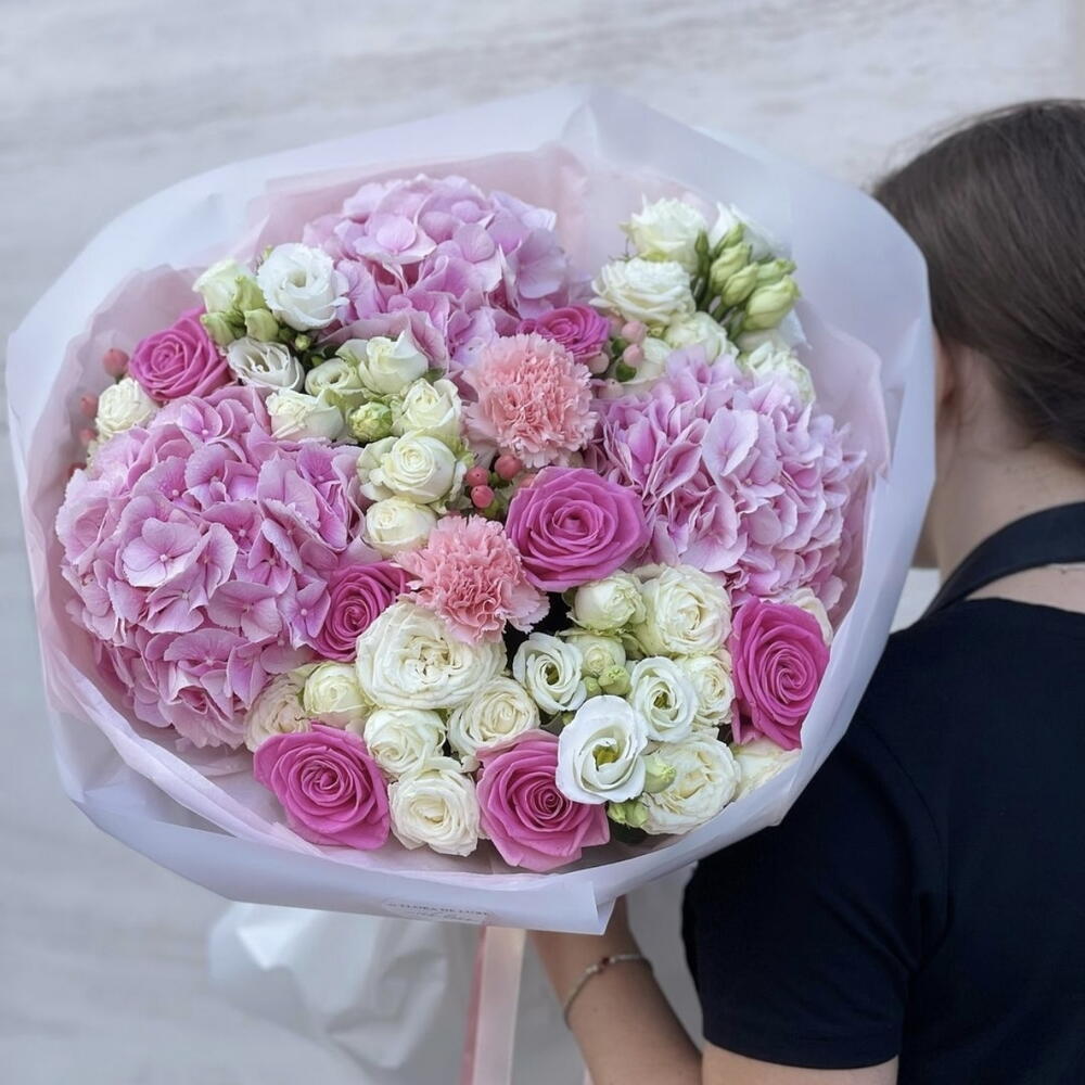 Bu özel Mono Buket, 3 adet canlı Hydrenga, 6 adet zarif Rosa ve 10 parça fışkırtmalı ile şıklığı ve zerafeti bir araya getiriyor. Benzersiz ve çarpıcı bir tasarımı olan bu çiçek aranjmanı, herhangi bir odaya sofistike bir dokunuş katmak için mükemmeldir. İster bir hediye olarak gönderin, ister kendi zevkiniz için satın alın, bu Mono Buket iz bırakacaktır.