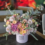 Bir kutu içinde guller, ostomalar ve ortancalar