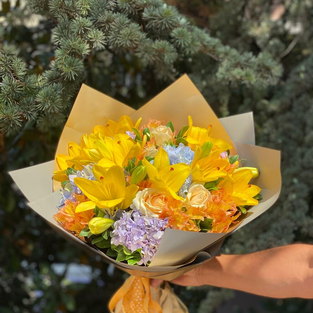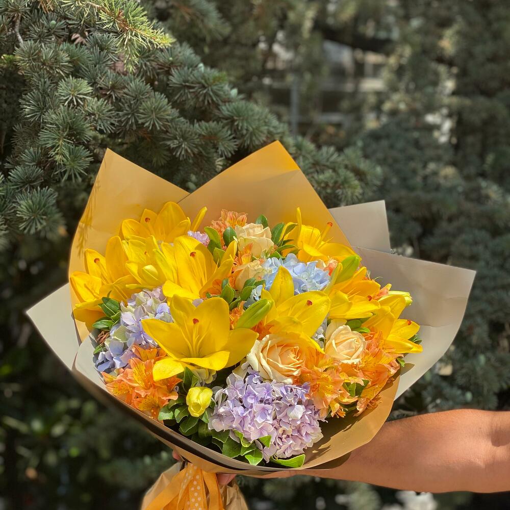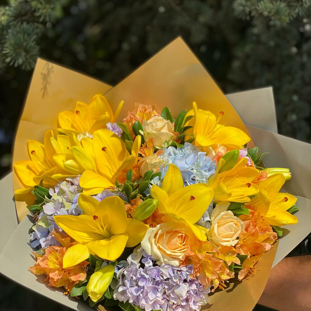 Bu hoş Karışık Buket, 5 adet zarif astomeria, 7 adet çarpıcı ortanca, 7 adet parlak sarı lilyum ve 5 adet romantik somon gül ile süslenmiştir. Ayrıca, bu çarpıcı kompozisyona, 20 çeşit kreatif yeşillikler eklenerek daha da canlı ve taze bir görünüm verilmiştir. İster özel anlarınızı kutlamak, ister sevdiklerinize sevginizi ifade etmek için mükemmel bir seçimdir. Buketlerimiz tüm duygularınızı anlatabilmek için özenle hazırlanır. Bu büyüleyici karışık buketle kalbinizi konuşturun.