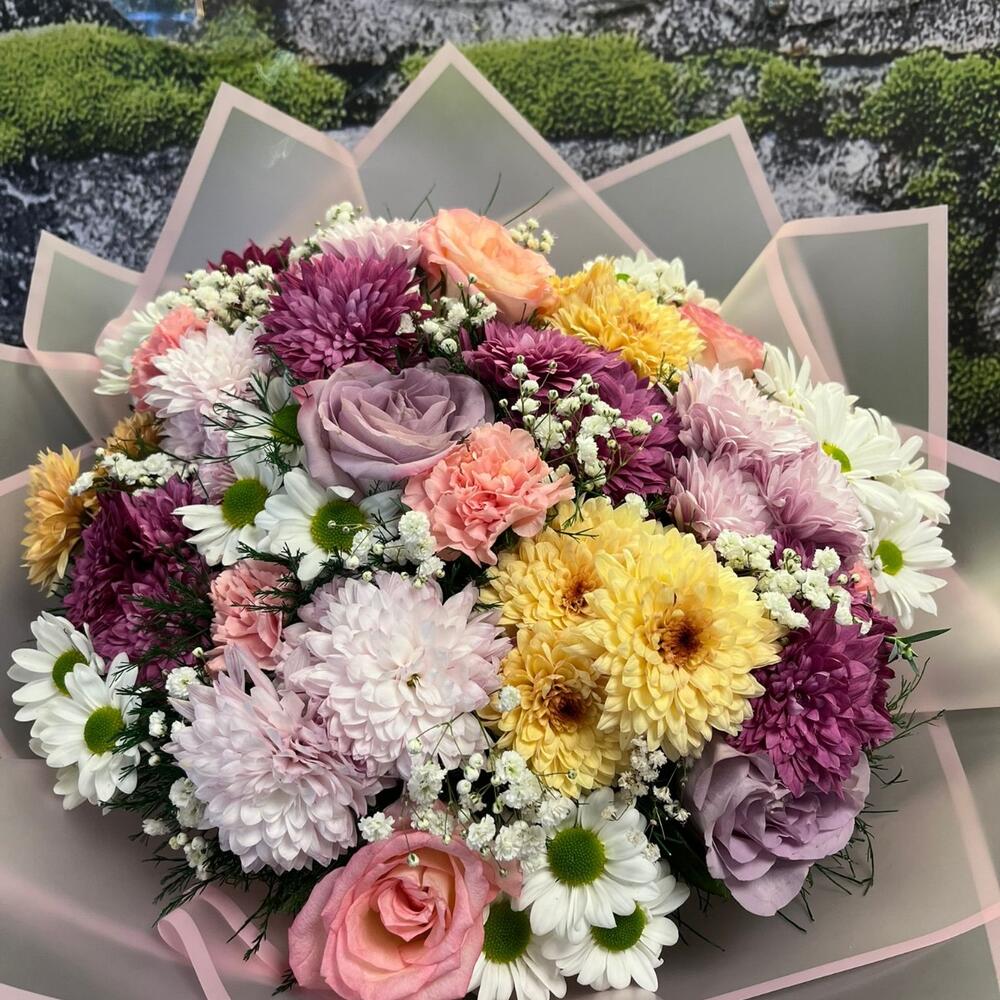 Renklerin ve zarafetin muhteşem uyumuyla hazırlanan bu Mix Buket, sevgi ve mutluluğu aynı anda hissettiren özel bir tasarımdır 💕 İçeriğinde ithal güllerin asil dokunuşu, papatyaların doğal güzelliği ve krizantemlerin canlı renkleri yer alır 🌸 Her biri taptaze çiçeklerden özenle seçilerek hazırlanmış olan bu karışık buket; hem klasik hem modern tarzı bir araya getirir 🌿 Doğum günü, yıldönümü, teşekkür veya “iyi ki varsın” demenin en özel yolu olan bu buket, enerjisiyle her ortamı aydınlatır ☀️ Şık ambalajı ve zarif kurdele detaylarıyla sevdiklerinize duygularınızı en zarif şekilde iletmenizi sağlar 🎀