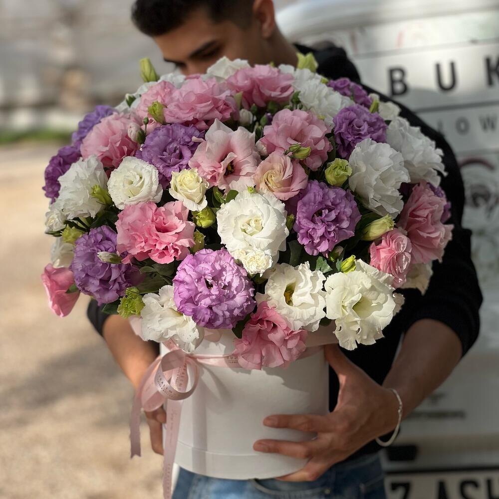 Bak eustomalar hiç sıkışık değil tane tane formu bozulmamış. Başarı detayda saklı. Neden buket almak varken kutuda çiçek alıyorum diyorsan? Bak dinle eğer antalyaya tatile geldiysen muhtemelen buketi koymak için vazo bulmak zorunda kalacaksın. Bu kutuyu sipariş verdiğinde koy odanın en güzel yerine vazo lazım değil zaten çiçekler her gün köpükten su içecek.