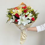 Bu zarif Karışık Buket, romantizmi ve güzelliği bir arada sunar. İçinde tam 12 adet kırmızı güllerin samimiyetini ve 6 adet liliumun zarafetini bulunduran bu buket, sevdiklerinizi özel hissettirecek. Yeşil yapraklar ve zarif ambalajı ile tamamlanan bu setin tümü, her önemli anı kutlamak için mükemmel bir seçenektir. Kendisiyle her zaman bir adım önde olun.