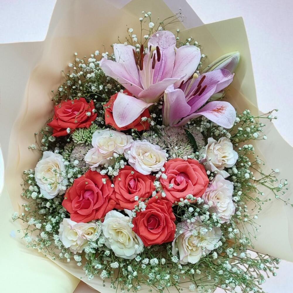 Mixed rose bouquet - renkli gul ve lilyum buketi