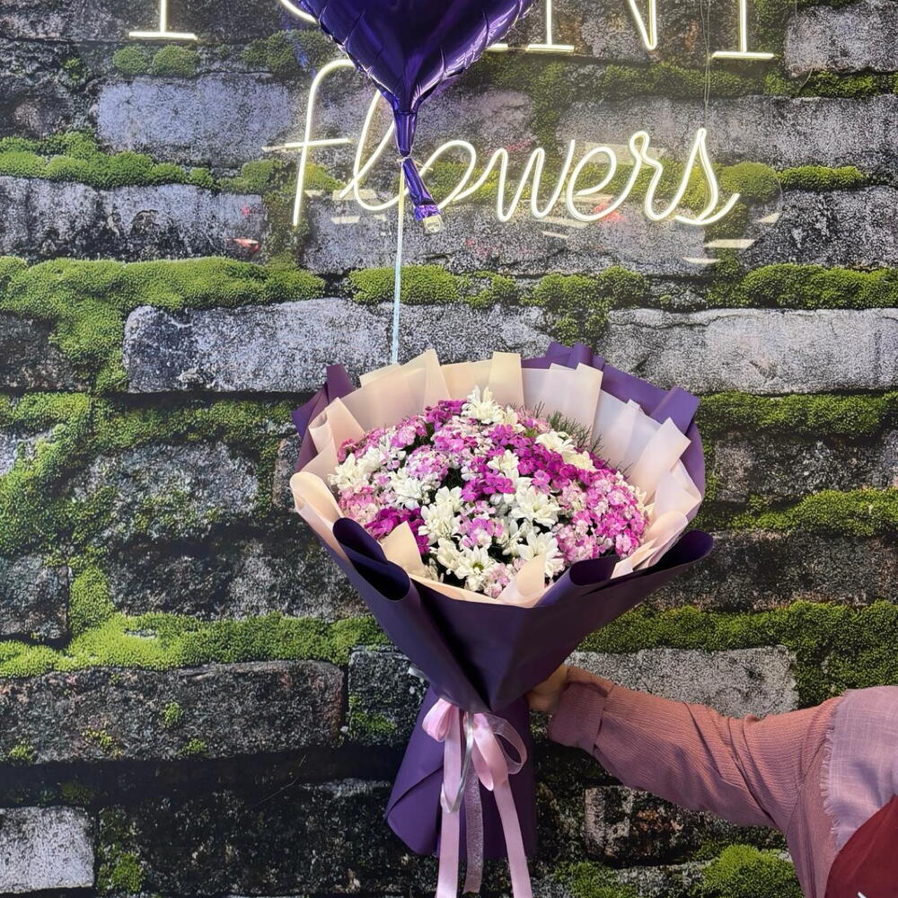 Mor Helyum Balonlu Premium Husnu Yusuf Papatya Buketi